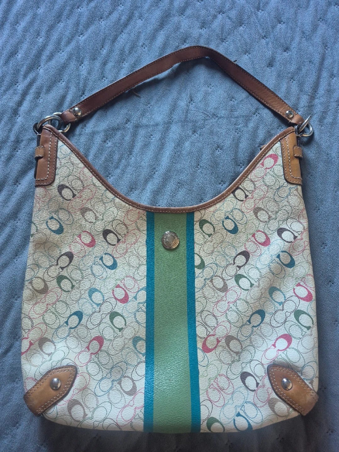 10This is a Coach Signature Stripe Demi handbag. The bag is crafted in China from the finest materials and leather. The model number is No. G1069-F15133. It's a stylish and durable bag! Close to new not used very much. Asking $300