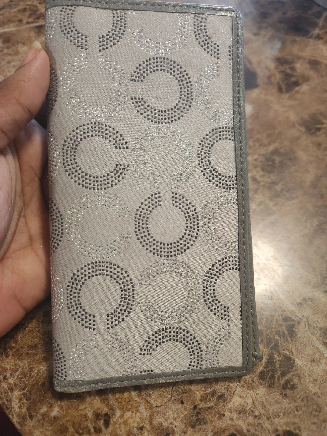 Selling a Coach wallet in silver! It's in great condition and has a stylish design. Perfect for keeping your cards and cash organized. price is firm plz. pick up midland and Danforth or 401 bay street