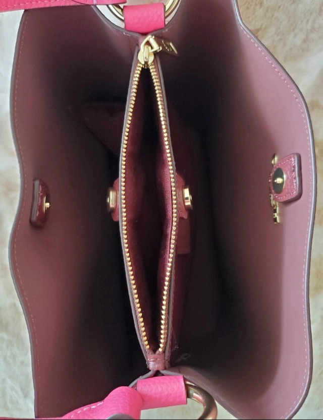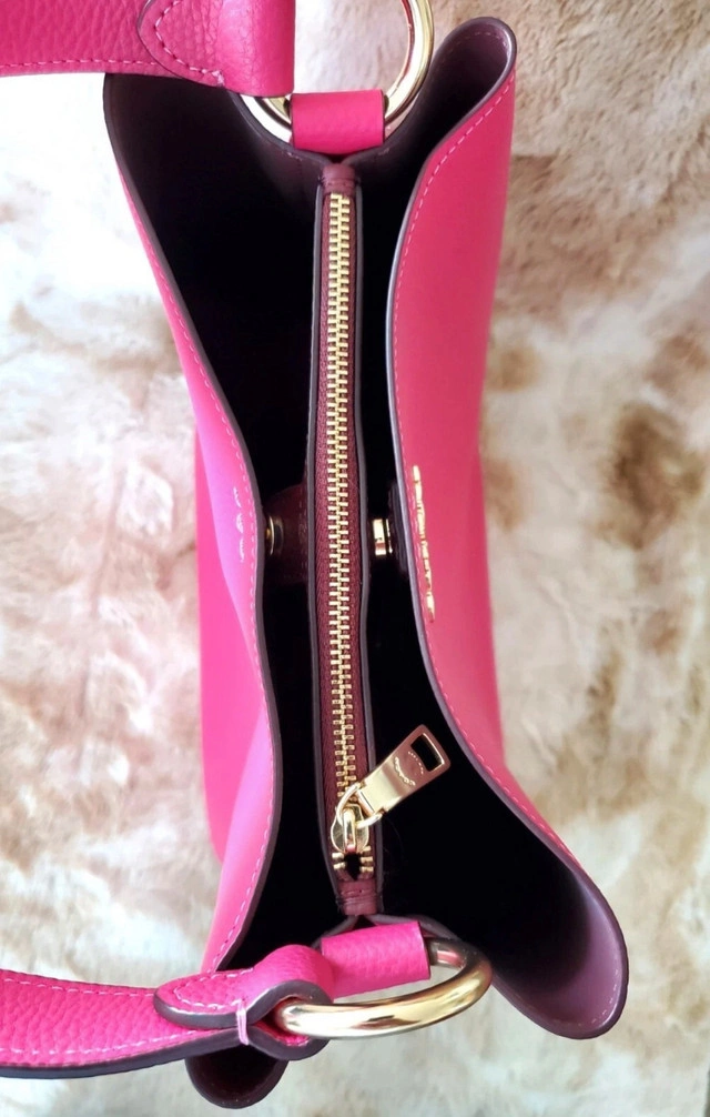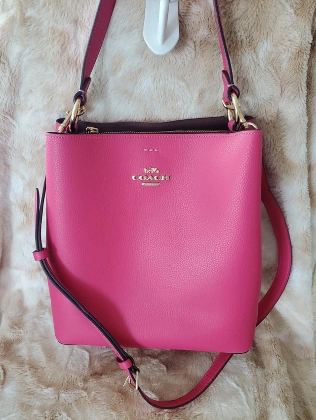 19Add a pop of colour to your wardrobe with this vibrant, Coach Town Bucket Bag Crossbody in a bold pink hue, crafted from double-faced leather, making it a durable and stylish accessory for any outing. The purse is in good condition. * Brand: Coach * Style: Bucket Bag/Crossbody * Colour: Bold Pink * Material: Double-Faced Leather