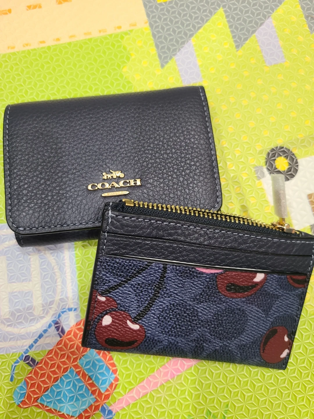 60Selling a cute Coach wallet and card holder set! The wallet is a dark blue colour and the card holder has a fun cherry print. Both are in great condition and perfect for everyday use