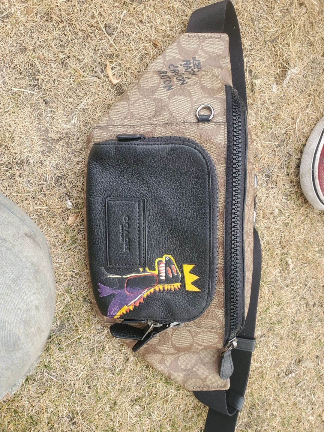 60Selling a Coach X Basquiat sling bag. The model number is E52157-C0420. It's a stylish bag featuring artwork by the artist Jean-Michel Basquiat, crafted to last. It combines Coach's heritage of craftsmanship with Basquiat's vision of colour and self-expression