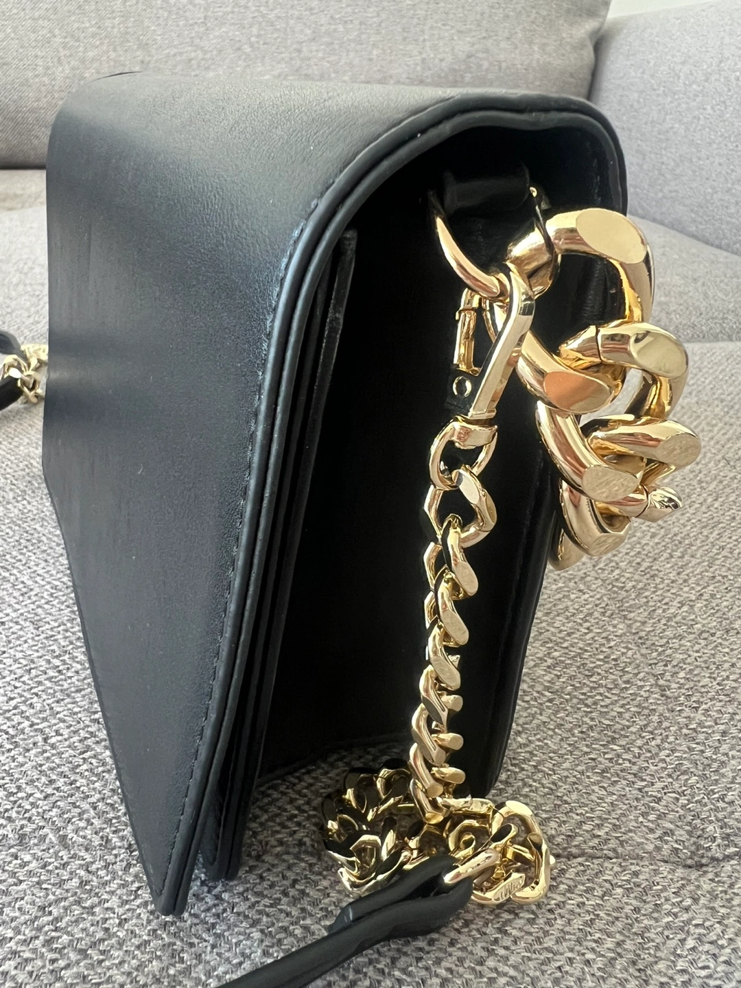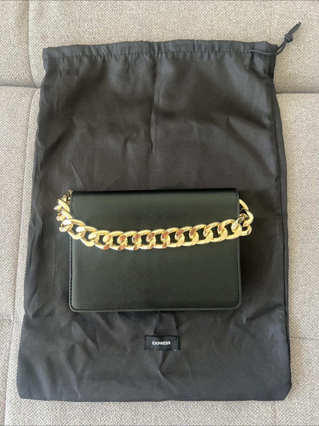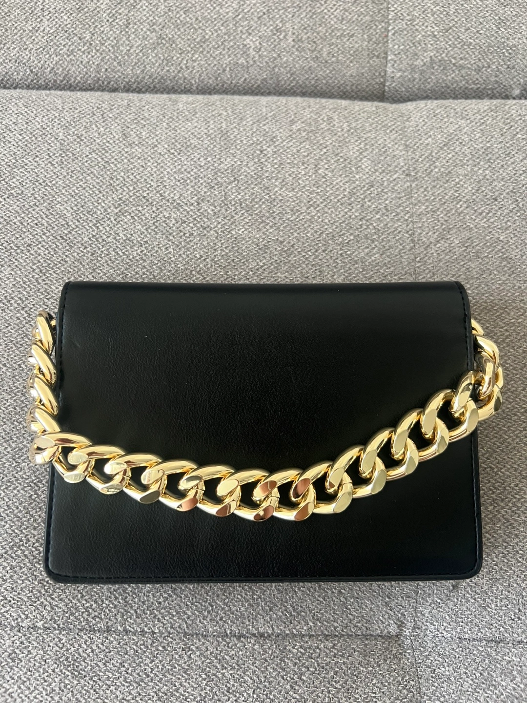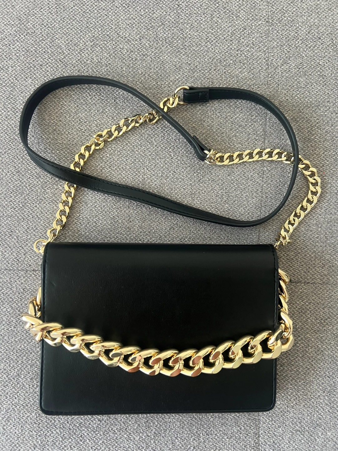 This chain strap crossbody is the perfect everyday bag. Pair with matching gold accessories for a chic look.