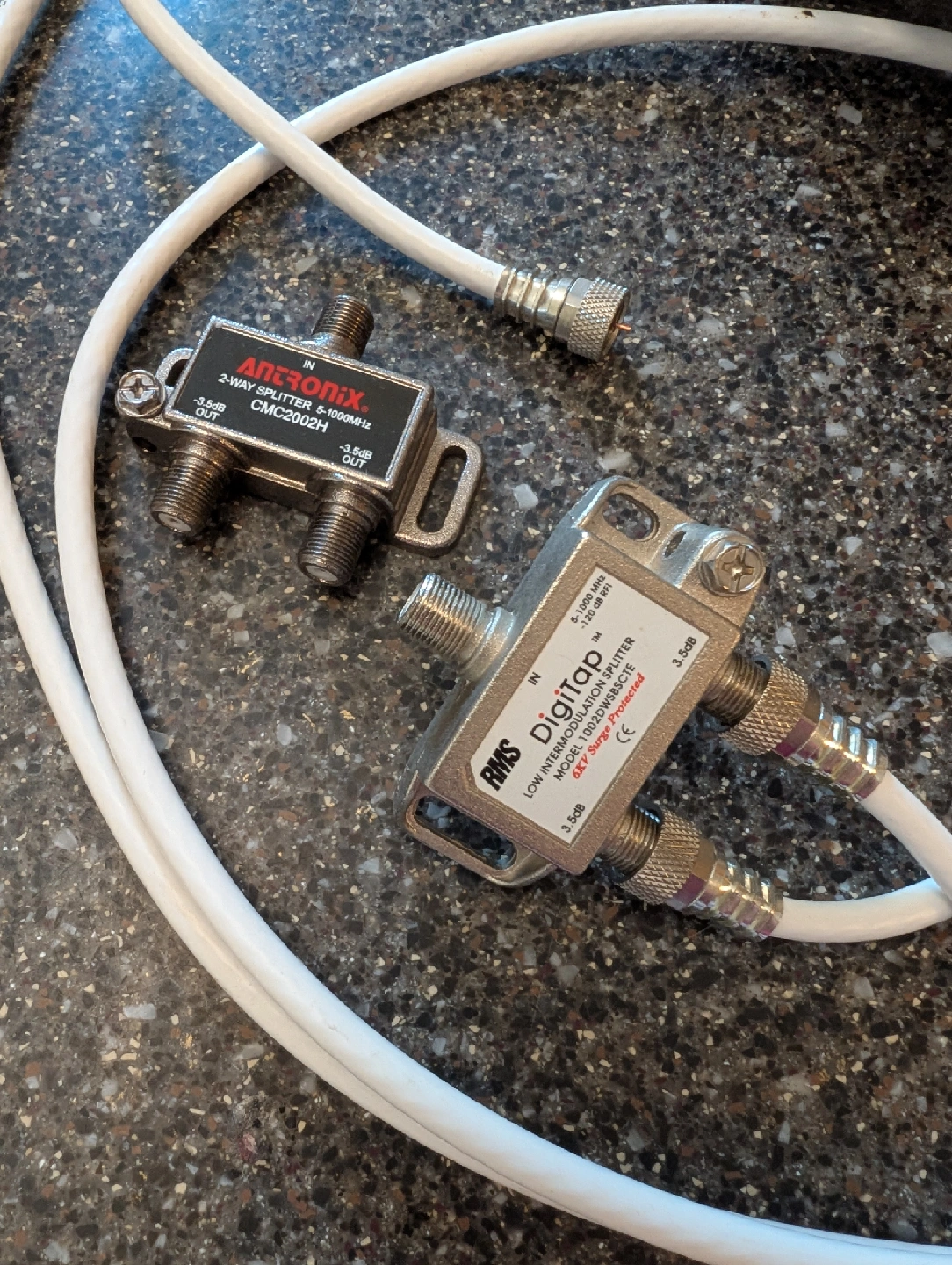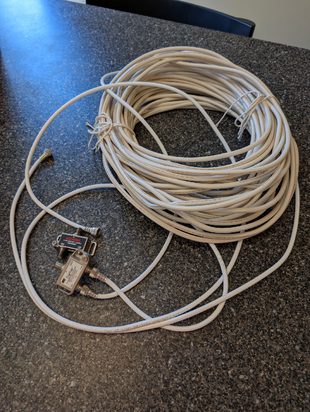 Extra long cable and two splitters. Pickup in Dundas at plaza on Governor's Road and Castlewood.