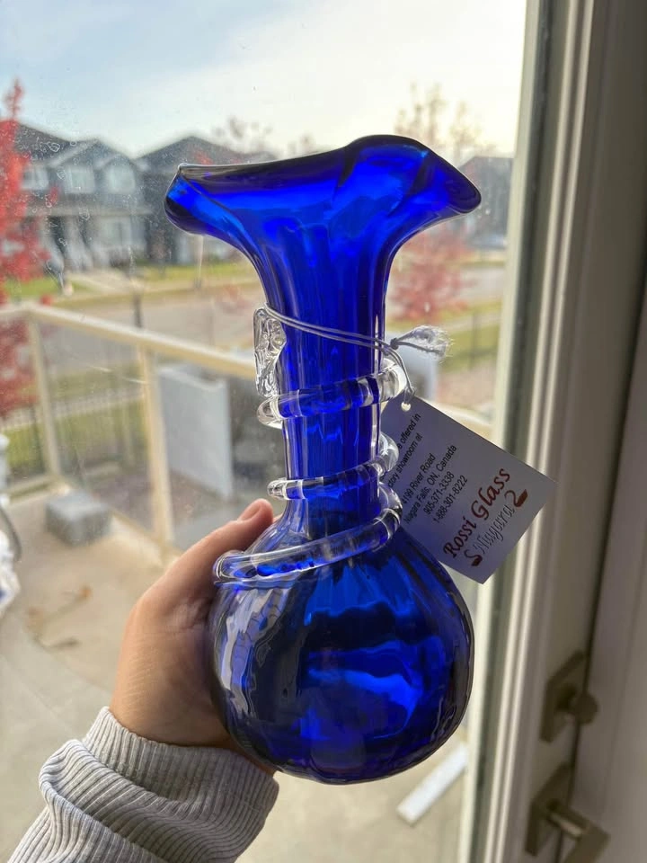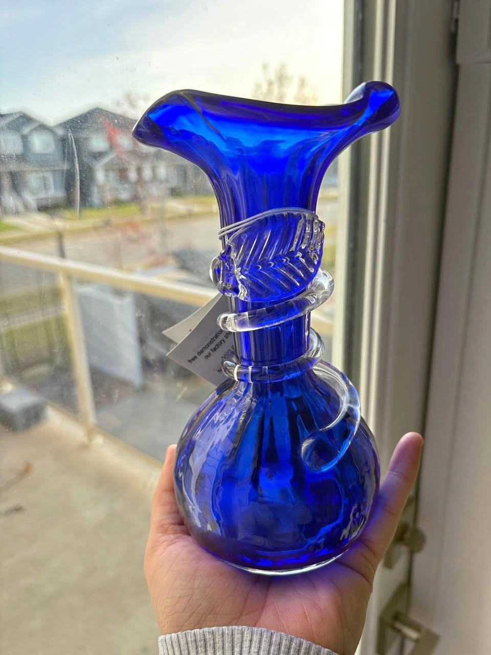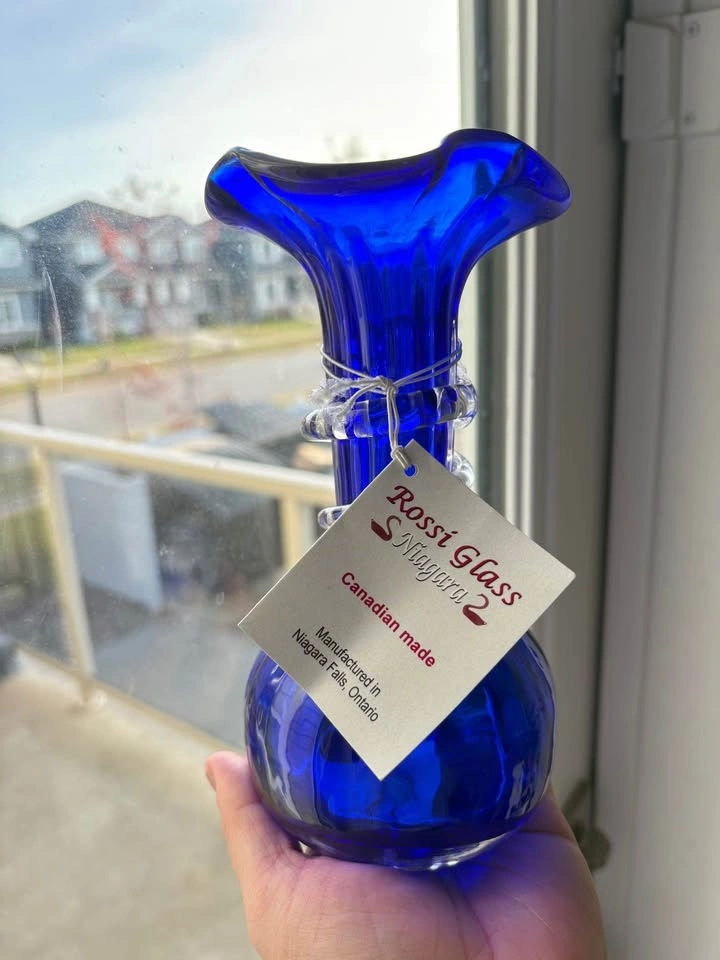 65Beautiful Cobalt Blue Vase Made in Canada Dimension: L 20cm, W 10cm Asking $45 or your best offer Pick up in Brighton! Check my other listings for deals π