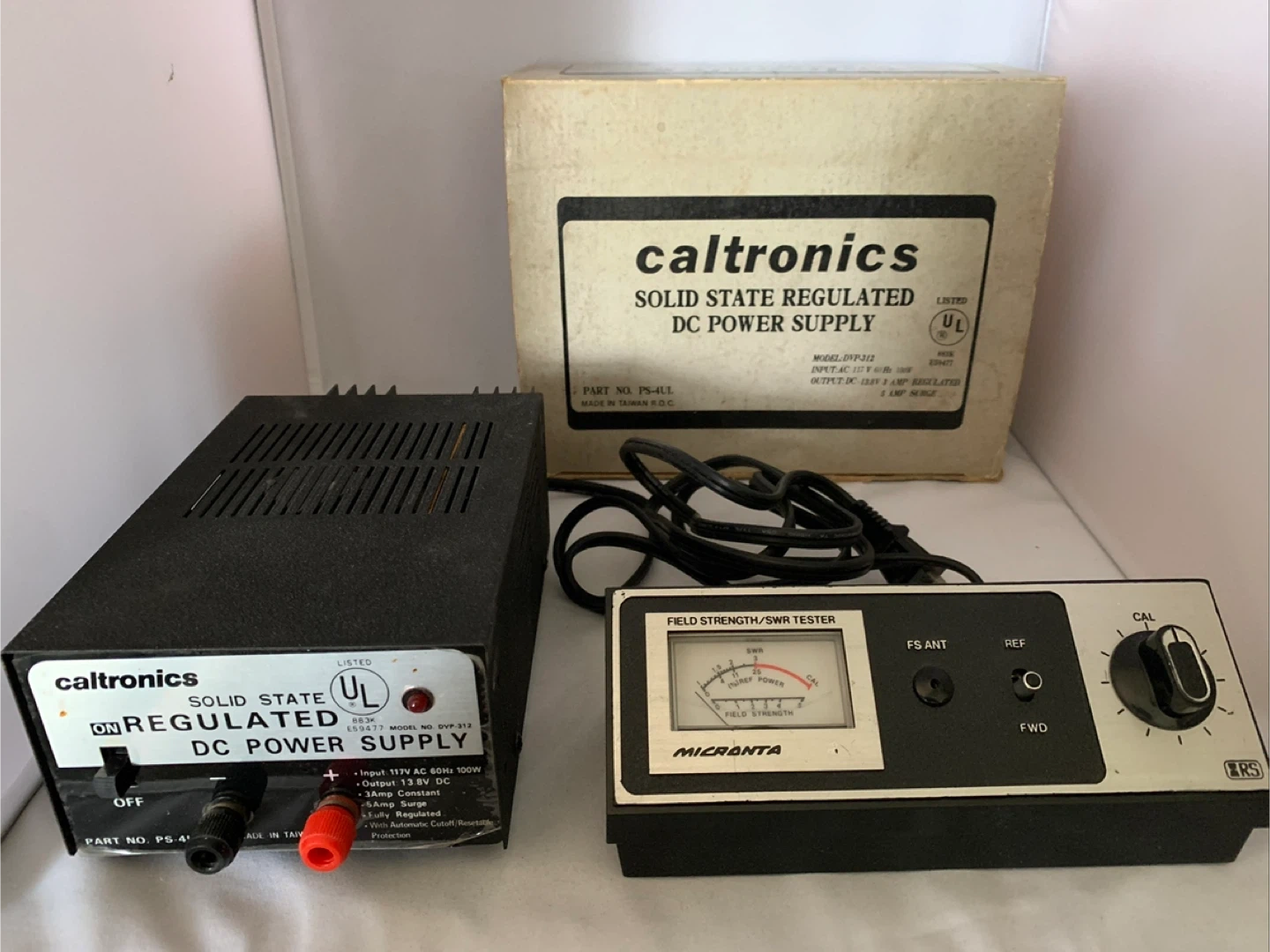 This is CB RADIO BUNDLE PACKAGE. It is open box but NEVER USED. Below are the items that come in the package: -Cobra 19 CB 40 Channel Radio -Mic -Mounting screws -Operating Manuals -Product Guide -CB radio rule guide -Caltronics Solid State Power Supply -Micronta Field Strength/SWR Tester -Workman B-100 Saturn Base Antenna -50Ft RG-58/U PL259 VHF Antenna cable Great if you love old media, are a radio enthusiast, enjoy playing with electronics or just love collecting. ALL will be shipped in one box. Please ask questions before buying, no returns.
