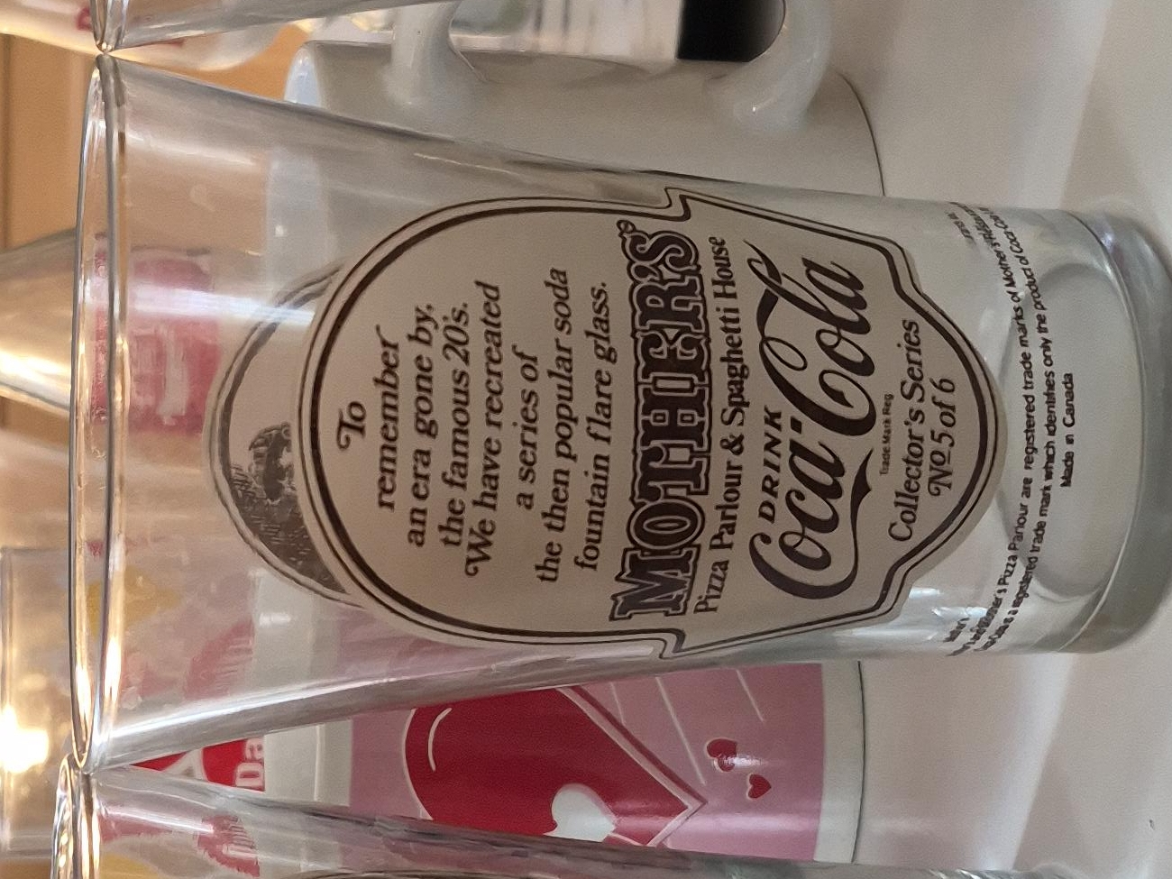 Selling 3 Coca-Cola collector's glasses from the Mother's Pizza Parlour & Spaghetti House series. They're number 5 of 6 in the series. A nice piece of nostalgia!
