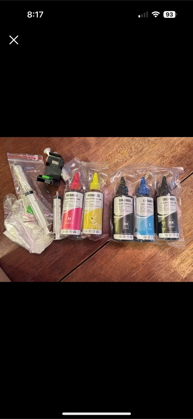 10I'm selling a brand new set of COCADEEX inkjet refill ink! The set includes magenta (M), yellow (Y), black (BK), and cyan (C) inks, along with some syringes and a print head. Everything is still sealed in its original packaging.