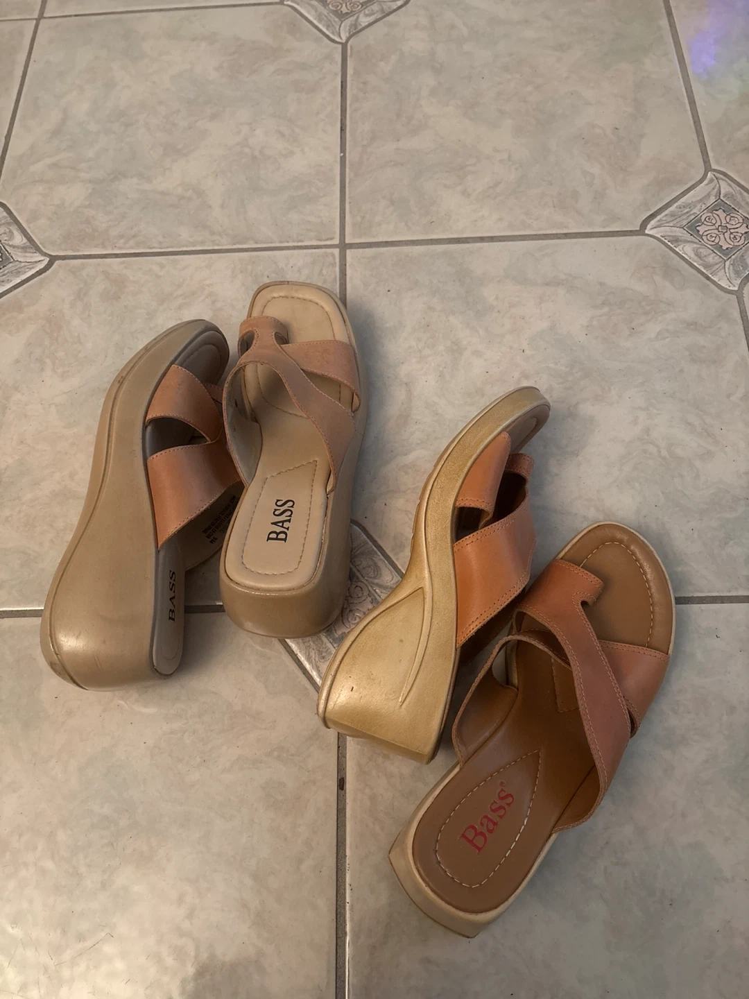 Bass Women's Wedge Sandals Size 9 ( nine) Tan Leather