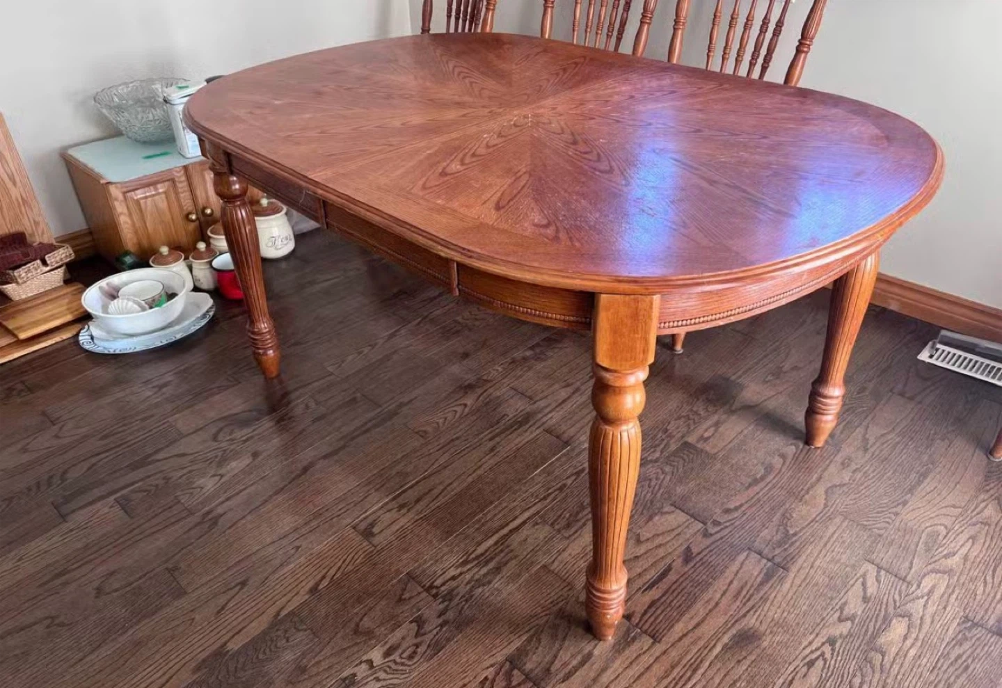 Wood kitchen table with extension.