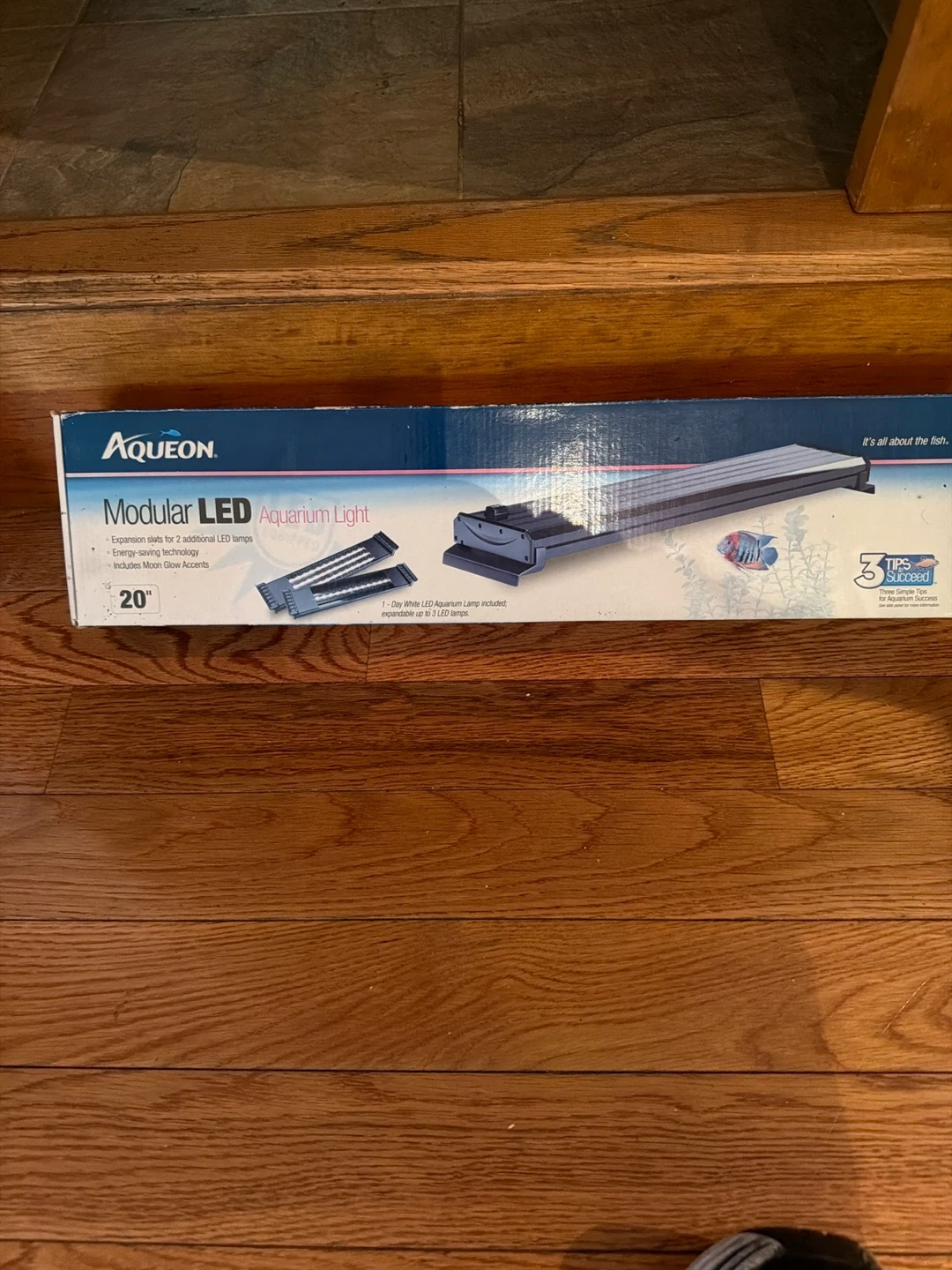 This Aqueon Modular LED Aquarium Light is 20 inches long. It's an energy-saving LED lamp that's expandable to up to 3 LED lamps. Includes Moon Glow Accents.