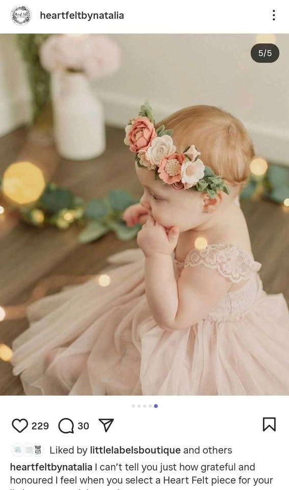 Felt headband by Heartfelt by Natalia (Canadian made). Like new, only worn a few times. Smoke free, dog friendly home. Porch pickup between Scotland and Mt Pleasant.