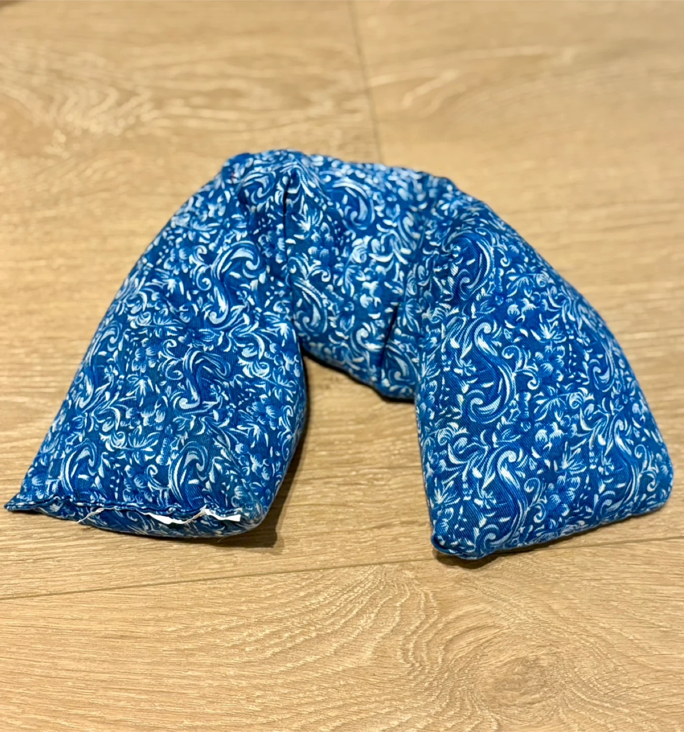This microwavable neck wrap is designed for soothing warmth. It's filled with natural materials for heat retention. The calming blue floral pattern adds a nice touch. It's shaped to comfortably contour around your neck and shoulders. $10 each.