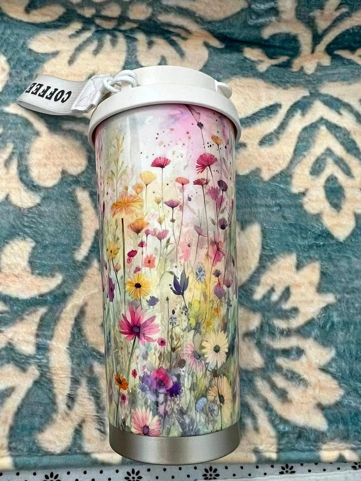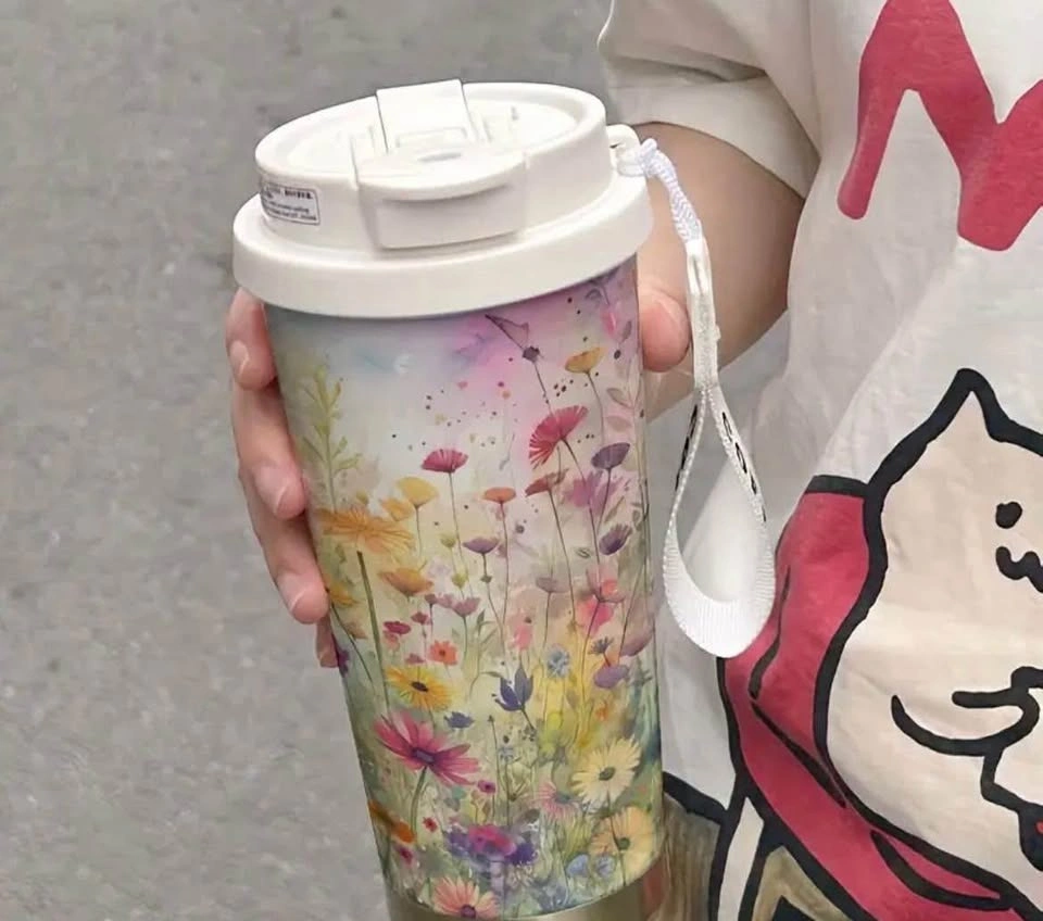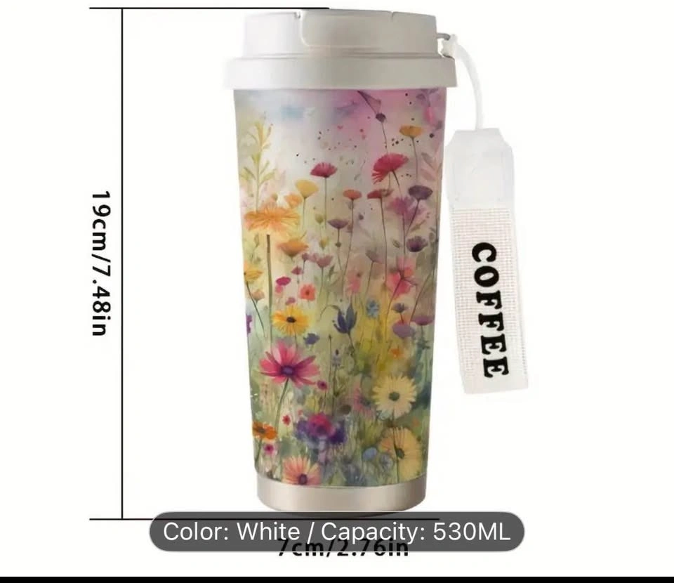 1817.92oz Watercolor Floral Insulated Coffee Cup with Straw & Leak-Proof Lid - Portable Travel Mug for Hot/Cold Drinks, Durable Handle, Perfect for Home, Office, Sports, and Gifts (Valentine'S Day, Mother'S Day, Thanksgiving), Coffee Travel Mug, Sports Hydration Gear, Artistic Drinkware, Doublewall Insulation