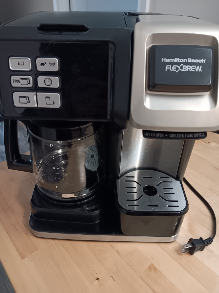 91- Hamilton Beach Flexbrew coffee maker - Single serve (pods or grounds) AND full pot capability - Programmable - Black and silver