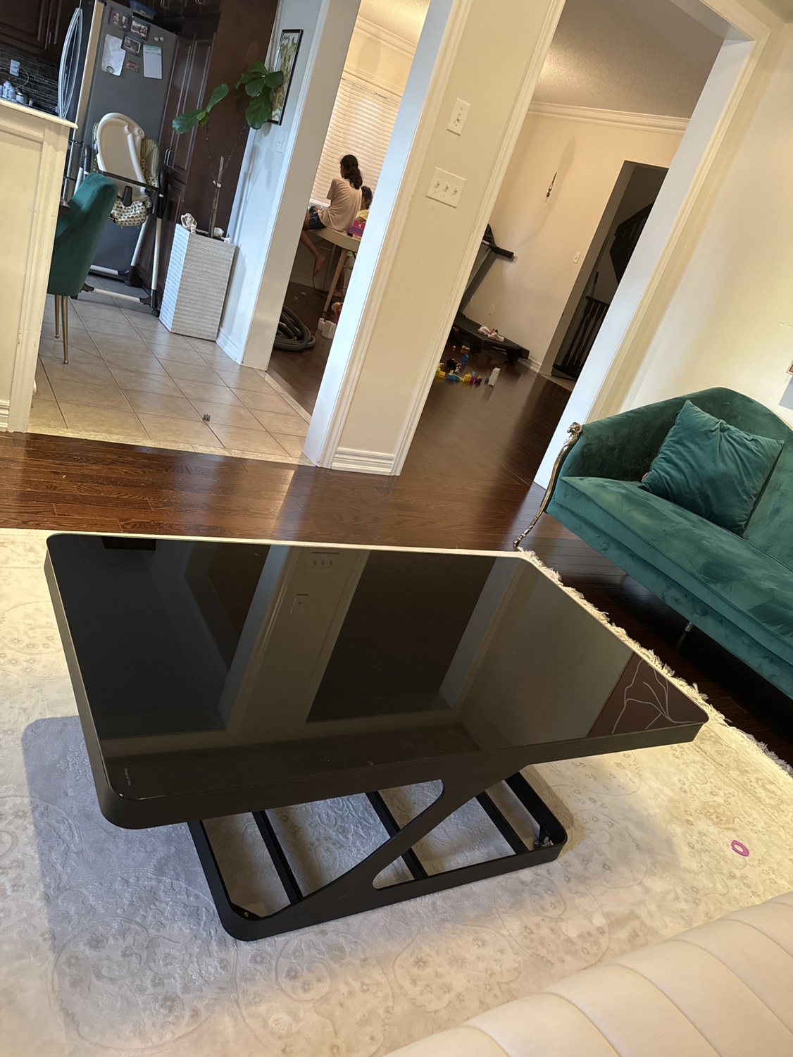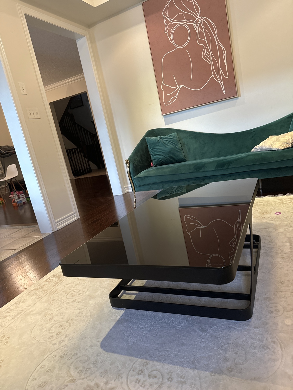 Two full sofas, coffeetable, sofatable, and area rug carpet