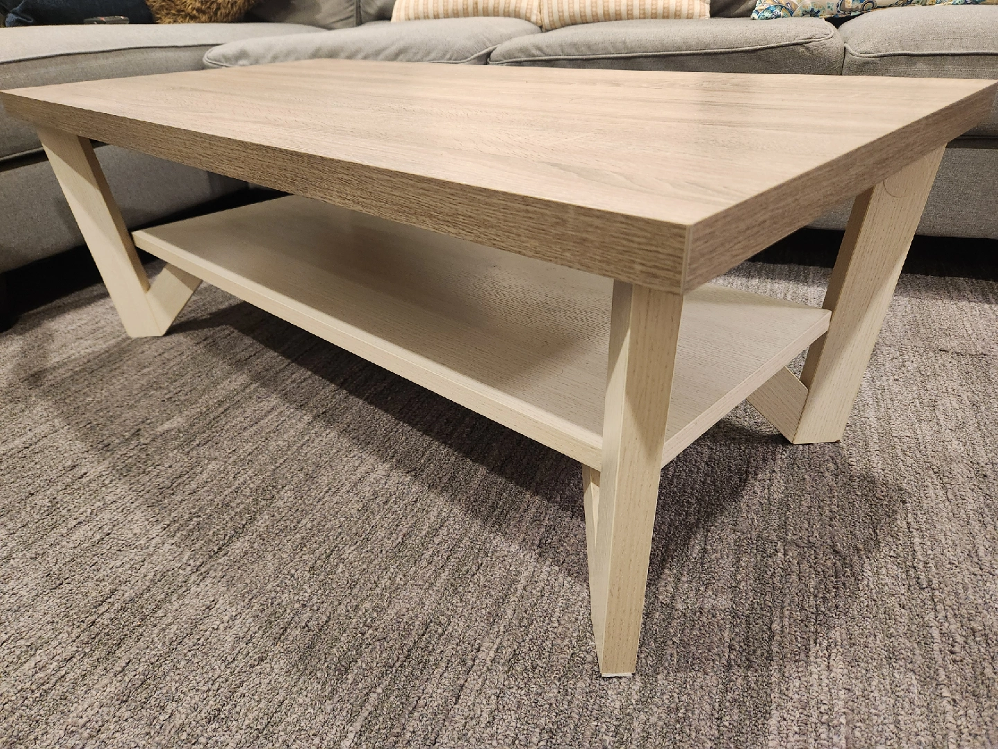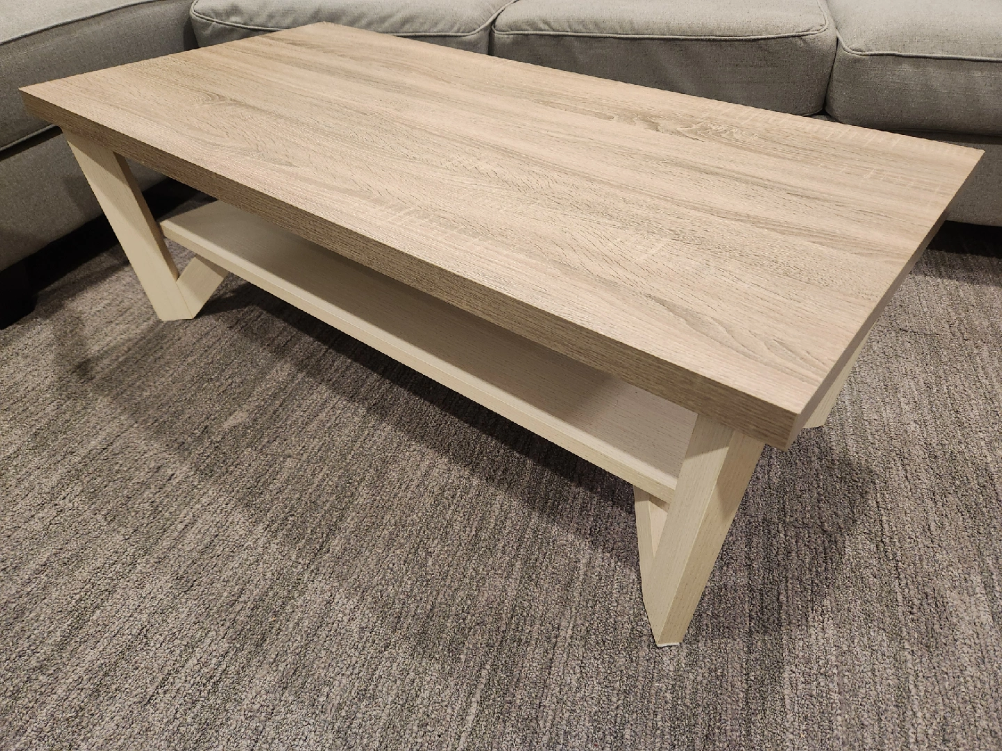 Selling a light beachwood look coffee table. It has a shelf underneath for extra storage or decoration. It's in great condition and would look great in any living room! originally from Leon's furniture. Check out my other listings there are many items