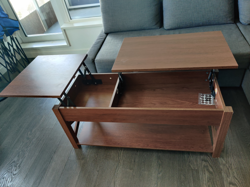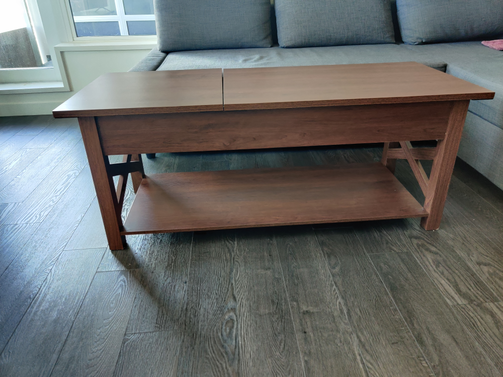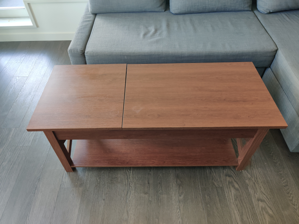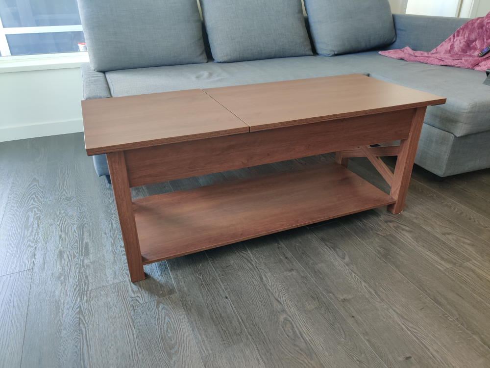 28Wooden coffee table perfect for the living room. Barely used , almost new. The compartments open up as a table and can also be used for storage. Size is approx 3ft by 1.5ft Pickup at: 5665 boundary road