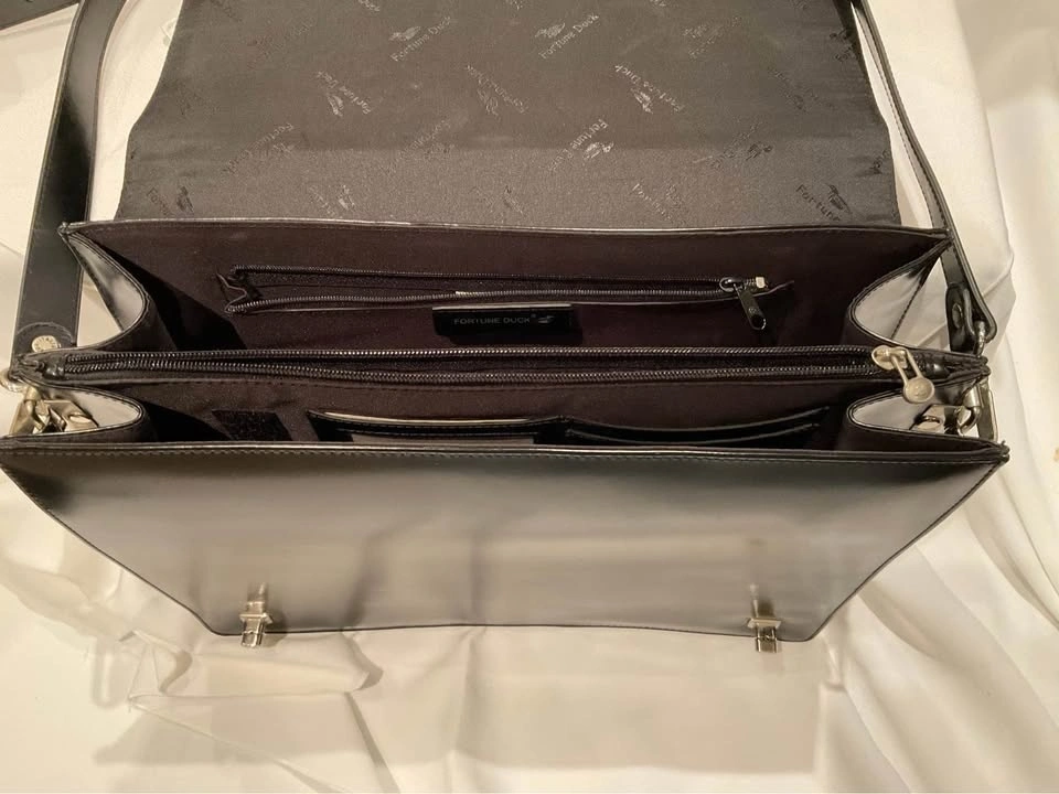 Vintage Fortune Duck Black Leather Messenger Briefcase