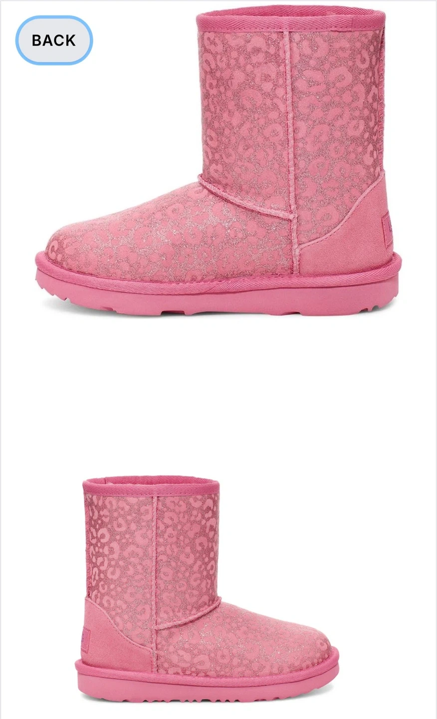 Ugg Classic Short Leopard Glitter Boots Pink Big Kids Size 1