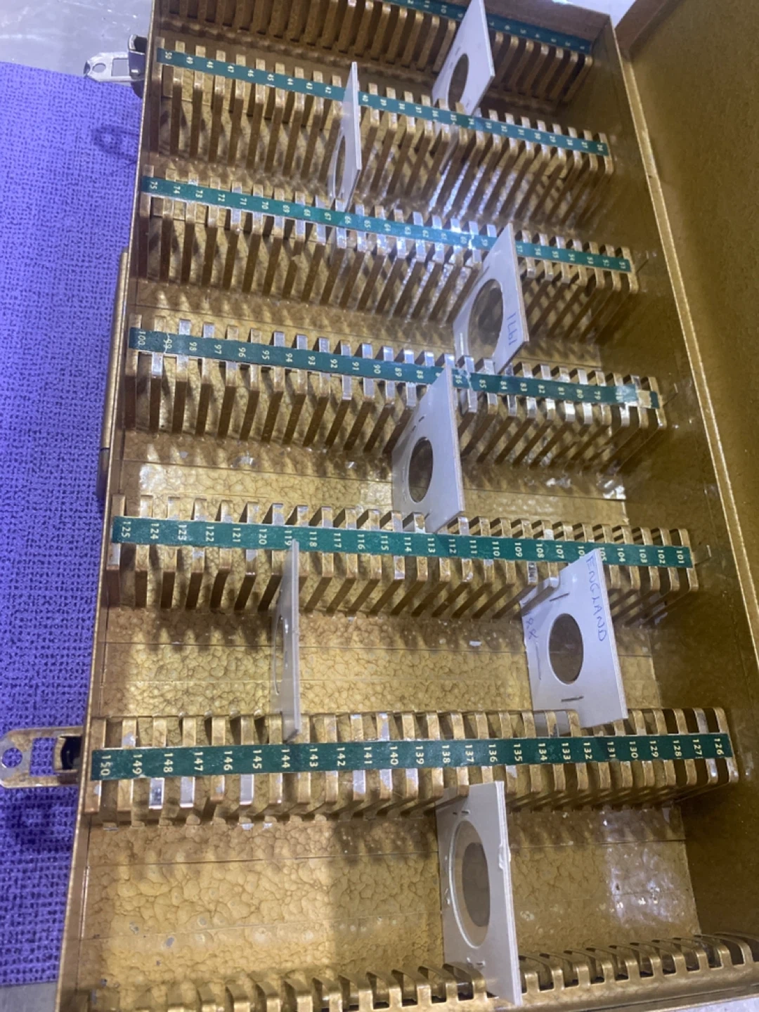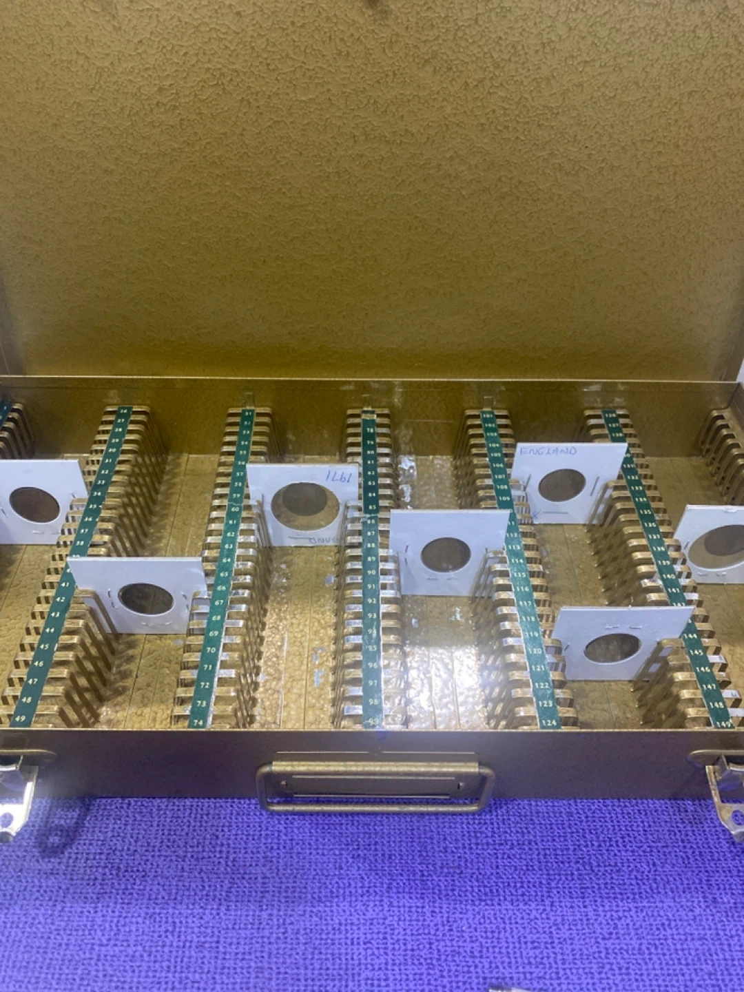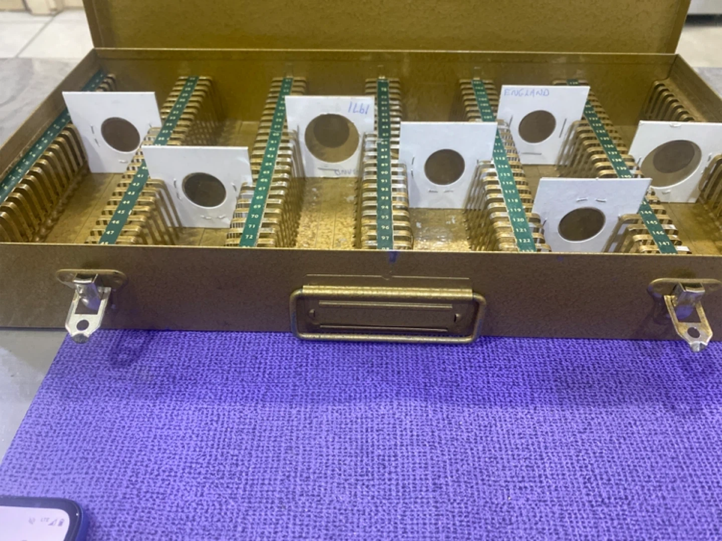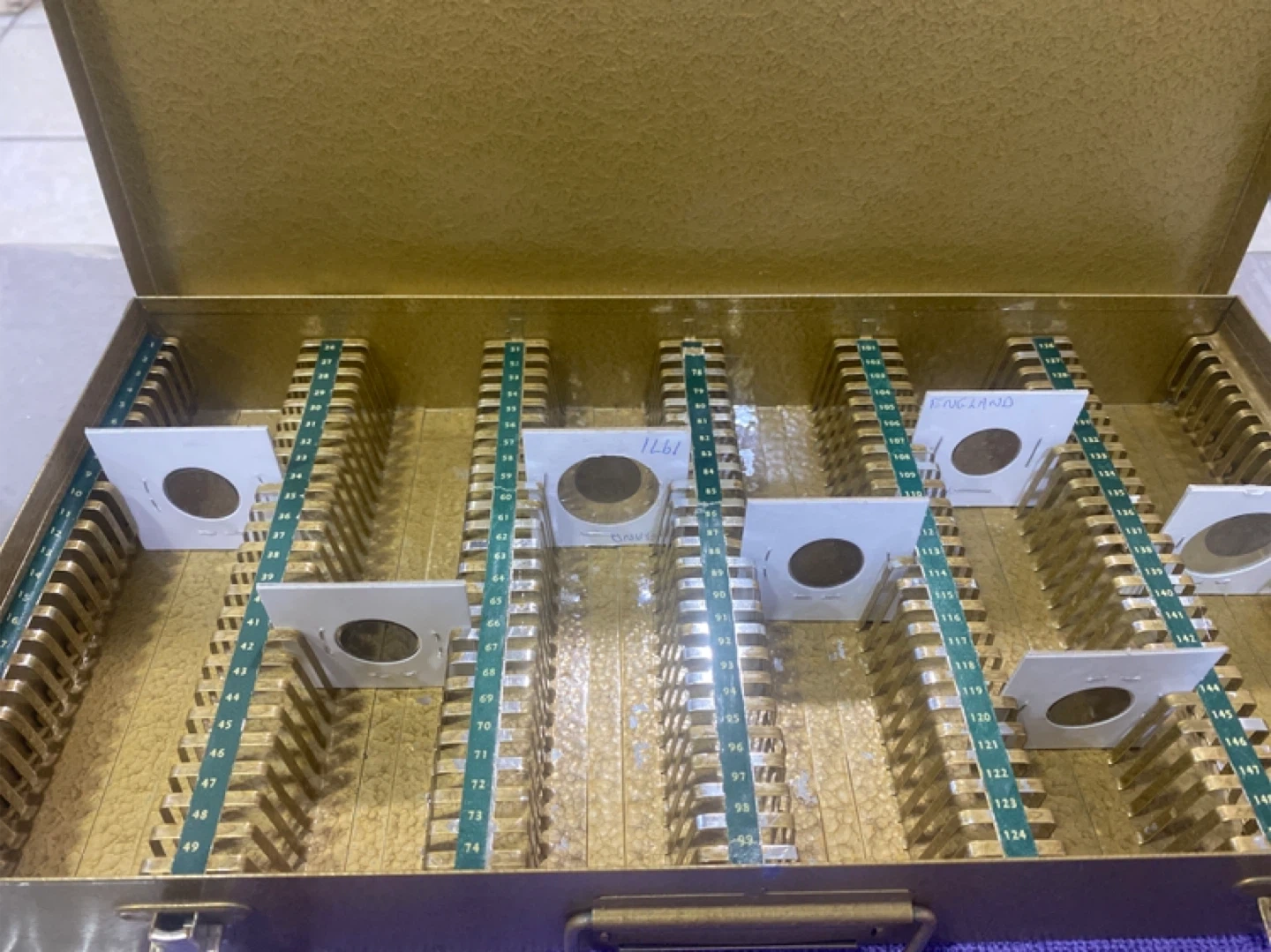 Selling a used coin holder case, perfect for organizing your coin collection! It has numbered slots to keep everything in order