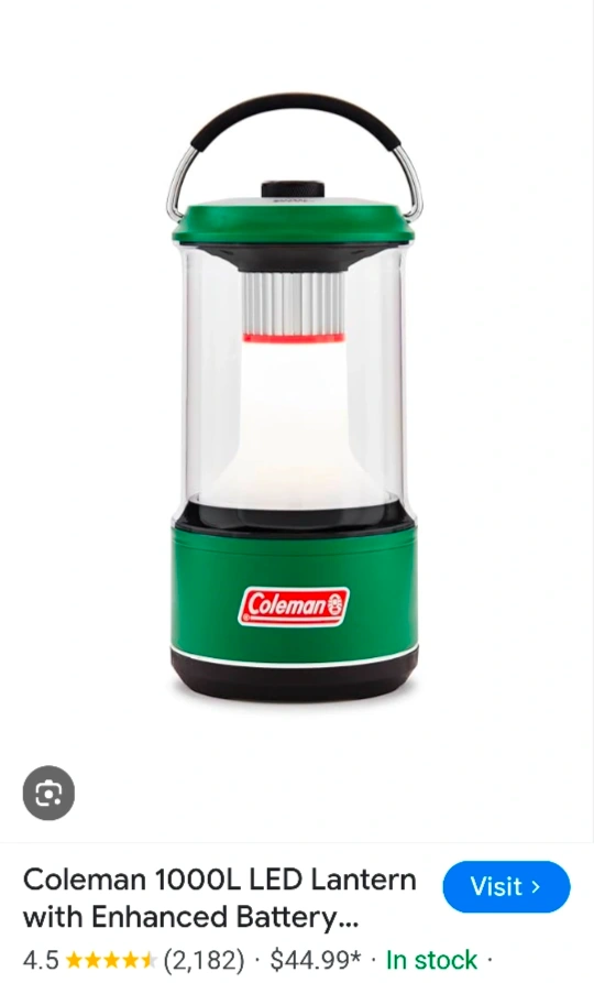 Coleman 1000L LED Lantern with Enhanced Battery Protection, Water-Resistant, Batteries Last up to 25% Longer Than Other Lanterns, Great for Camping, Power Outage, Emergencies, & More ✨$20 👍In excellent condition we just switched to chargeable *Cash only *Pick up in Clarkson Mississauga