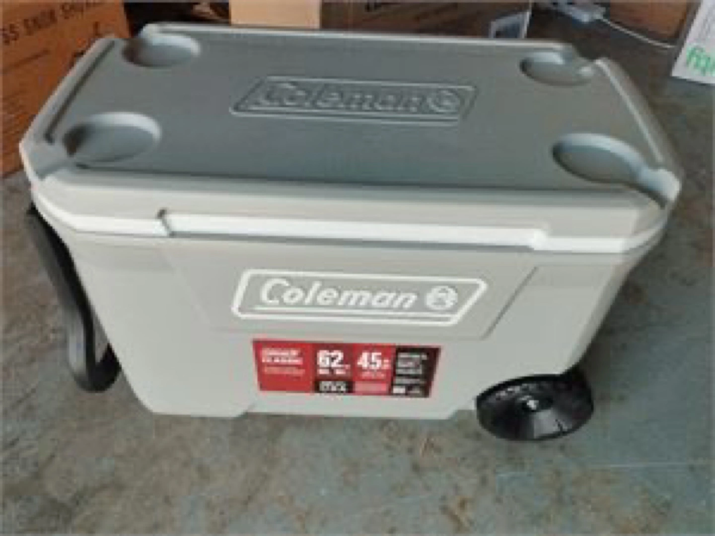FULLY INSULATED: Lid and body Keeps the Ice up to 5 days in temperatures as high as 32 C (90 F); logo colour on cooler may vary FOR THE LONG HAUL: Heavy-duty 6-inch wheels and durable tow & swing-up handles designed for easy transport CUP HOLDERS WITH DRAIN: Molded into the lid to keep drinks from spilling; fit up to a 30-oz. tumbler HAVE-A-SEAT LID: Closed lid supports up to 250 lbs. STAIN-RESISTANT LINER: For easy cleanup; leakproof channel drain plug EASY TO OPEN: Recessed lip for easier access to contents LARGE CAPACITY: Holds up to 101 cans LEAKPROOF: Channel drain plug Logo colour on cooler may vary. Used. Like new. $100 or best offer.