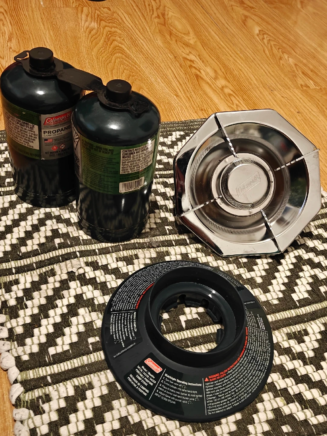 15Selling a Coleman propane camping stove, perfect for your outdoor adventures! It comes with two propane fuel canisters so you're ready to start cooking right away. The stove is designed for portable use and easy setup. Just follow the matchlight operating instructions for a safe and enjoyable cooking experience on your next camping trip