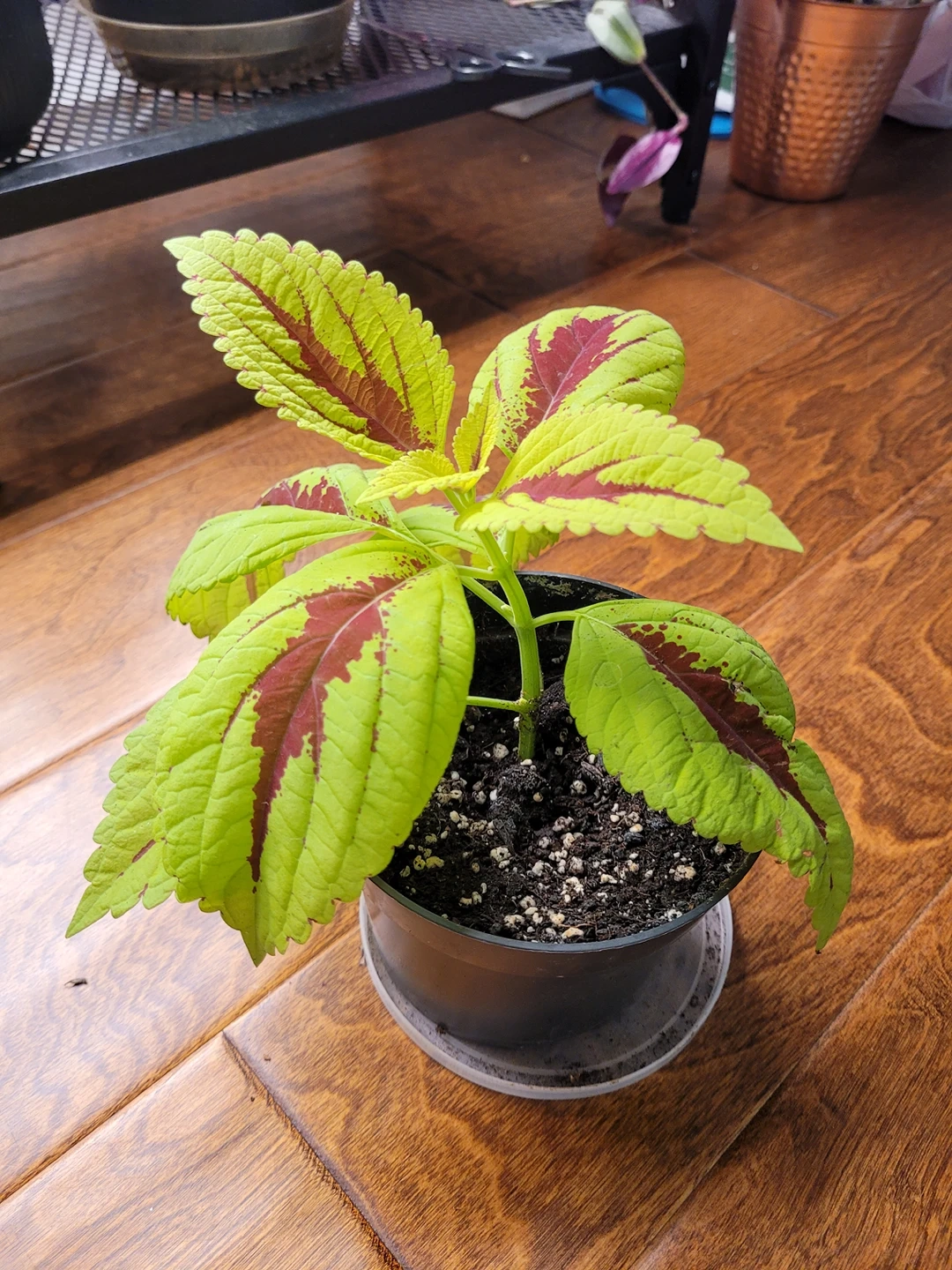 130Healthy Coleus plant. Red and green lush leaves. Love the sun. Depending on how much sun it gets, it will get more or less red. Pick up near High Park stn.