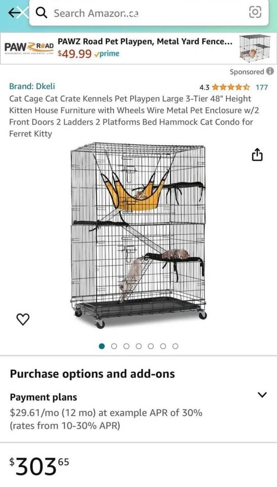 532 x 22 x 48 tall 3 tier on wheels folds flat includes ferret shampoo, refresh spray and hammock