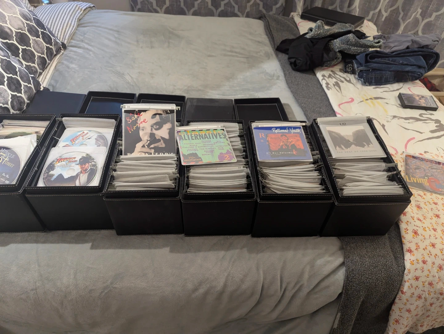 92Selling a collection of CDs in black storage boxes. Includes various artists and genres. Great for any music and movie lover! 99 percent 80's. 100's of titles. Make me an offer! Moving and I hate to throw out music.