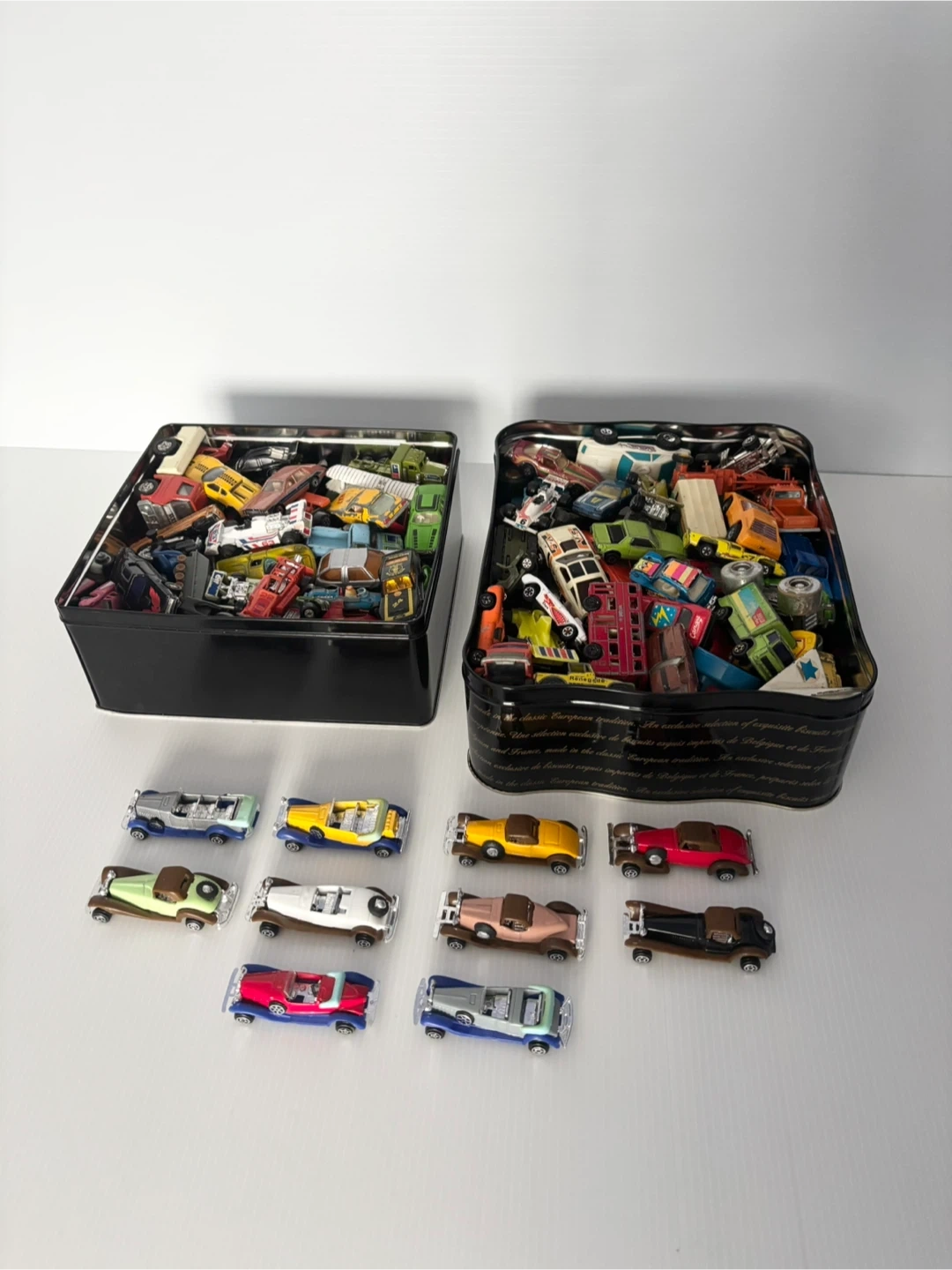 145Selling my collection of different vintage toy cars. Comes with an assortment of carded, Hong Kong, Japan, and and two tins full of mixed diecasts toys. There is a bit of everything: yatming, Zylmex, Kenner etc. Condition ranges, selling as one big lot. Located in Pickering ON