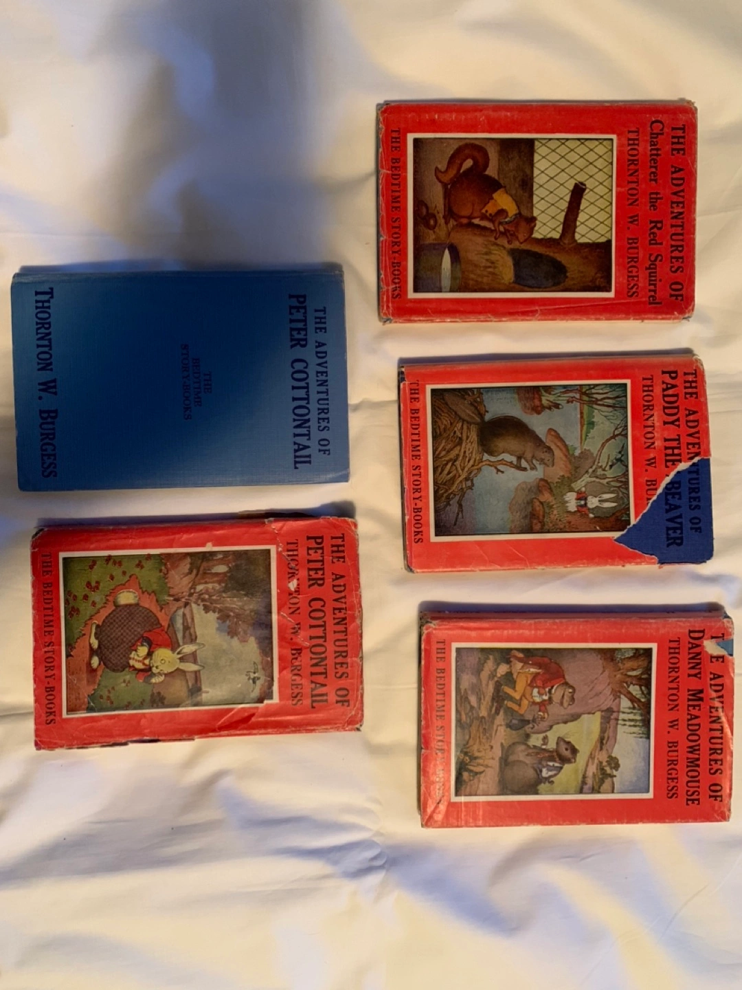 58Set of vintage children's books. Features illustrations. Includes these titles: Chatterer the Red Squirrel Paddy the Beaver Danny Meadowmouse Peter Cottontail (2 copies, one without a dust jacket) Published by McClelland & Stewart, 1943.