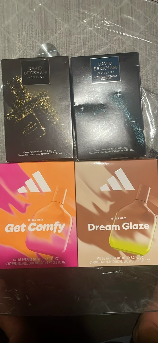 5Selling a set of fragrances that includes David Beckham Instinct (Eau de Parfum 50 ml and Shower Gel 150 ml) and Adidas Vibes (Eau de Parfum 100 ml and Shower Gel 100 ml) in Get Comfy and Dream Glaze scents each one usually 50 selling for 30$ 2 for 50