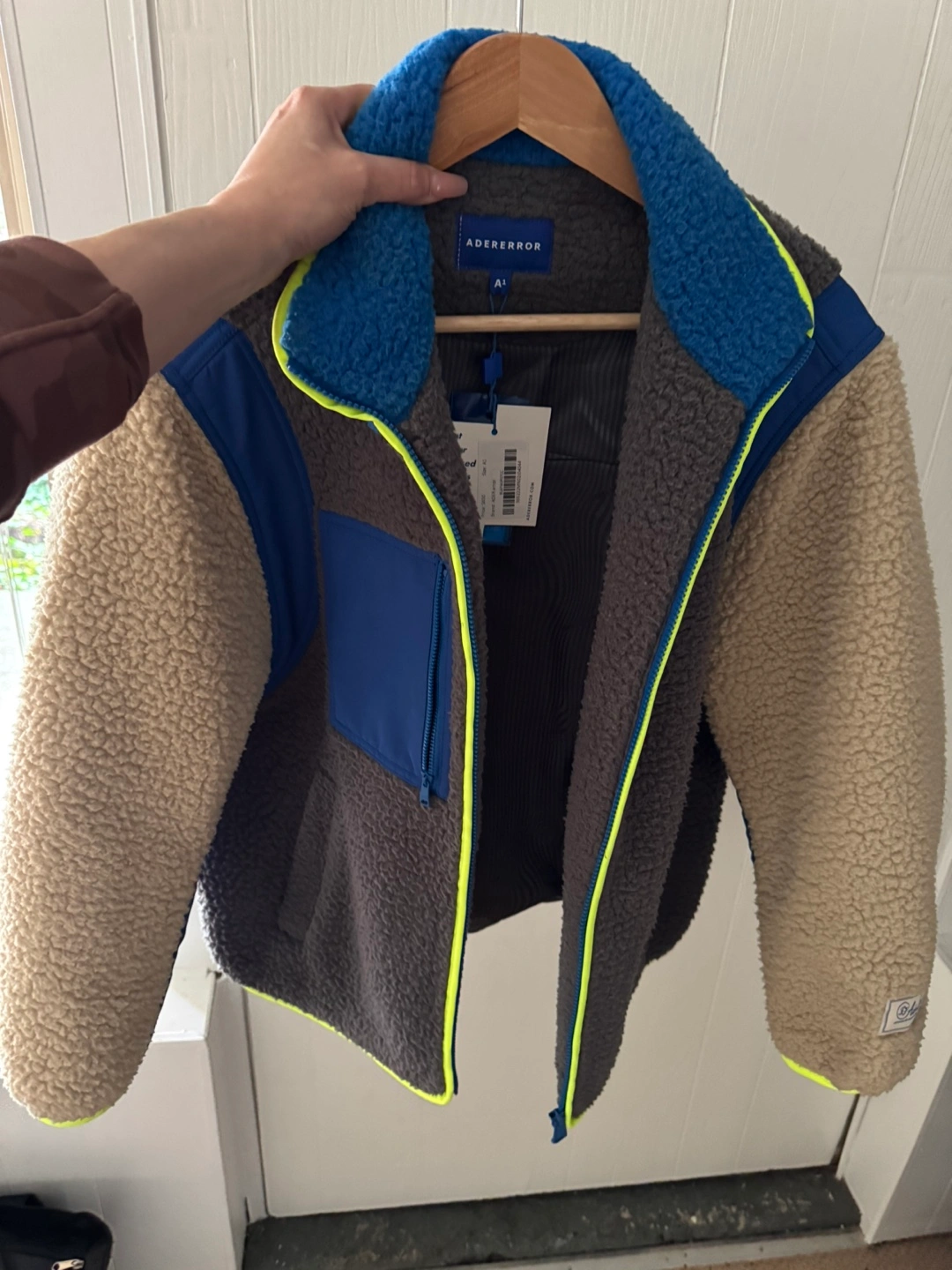32Color blocked sherpa fleece jacket. Zip-up front. Multiple colors. New with tag.