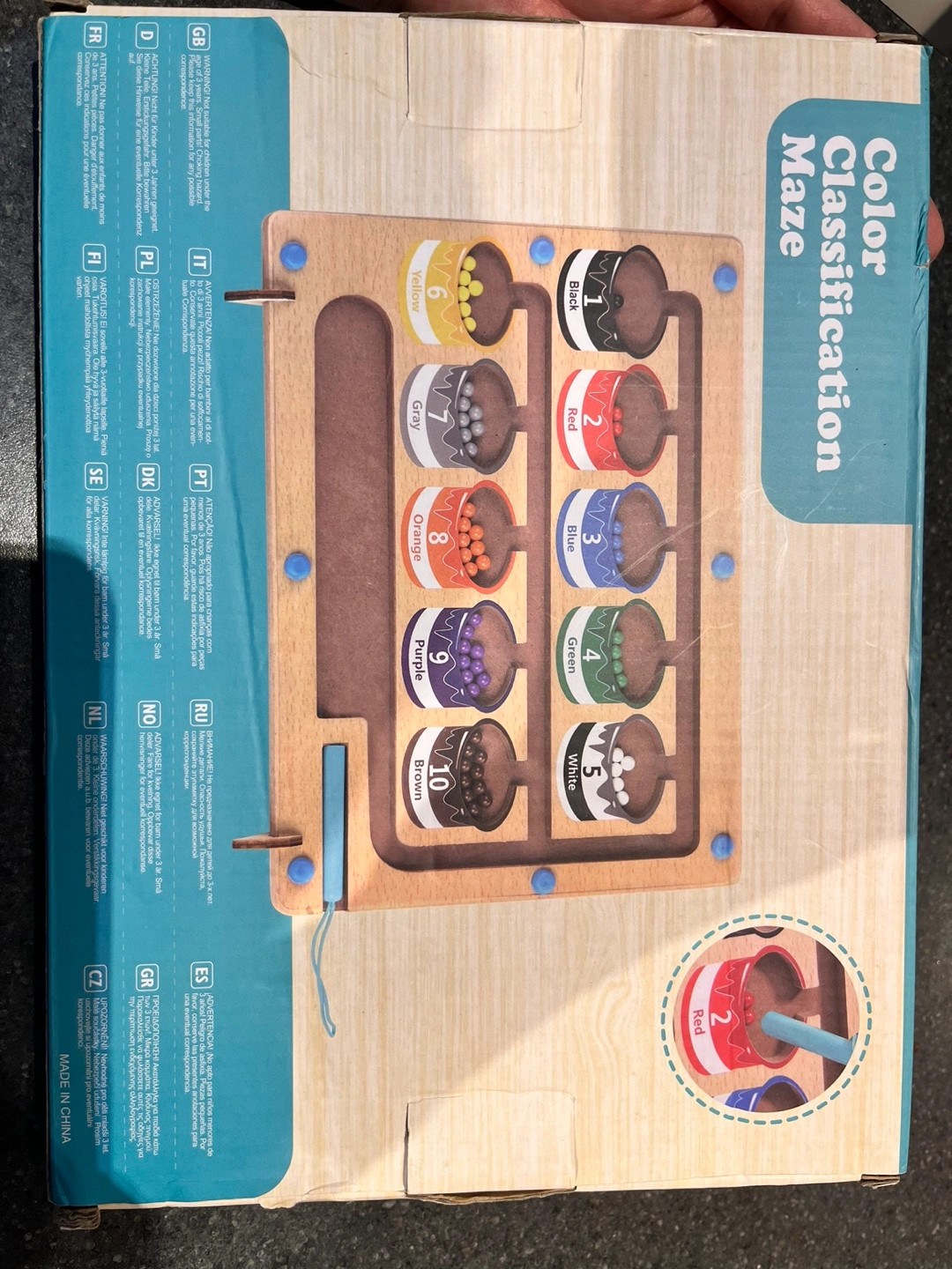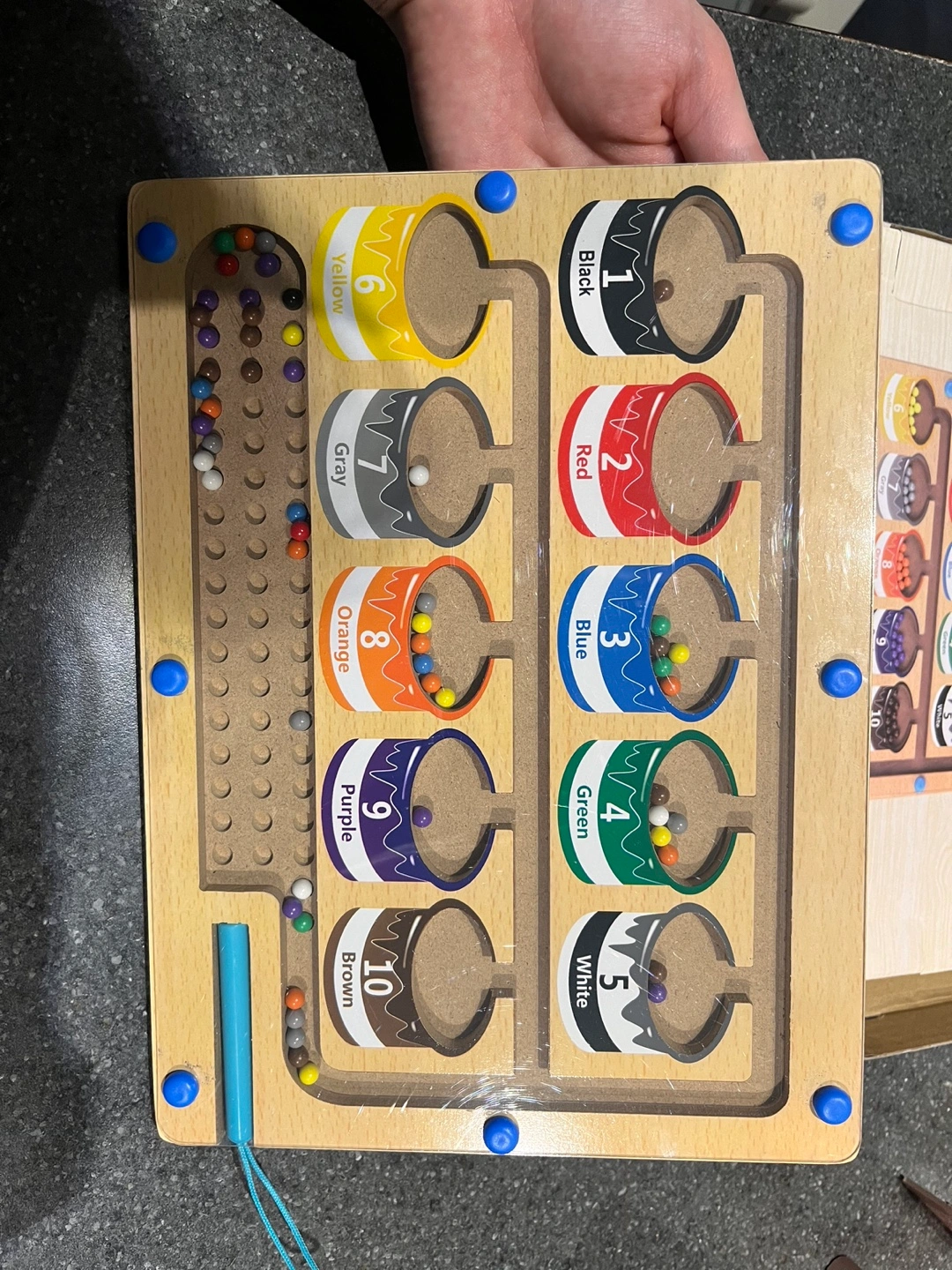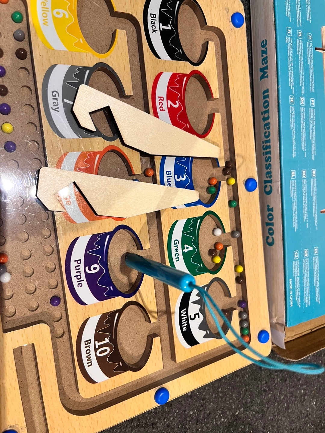 Educational toy. Great for developing fine motor skills and colour recognition. My baby doesn’t like this.