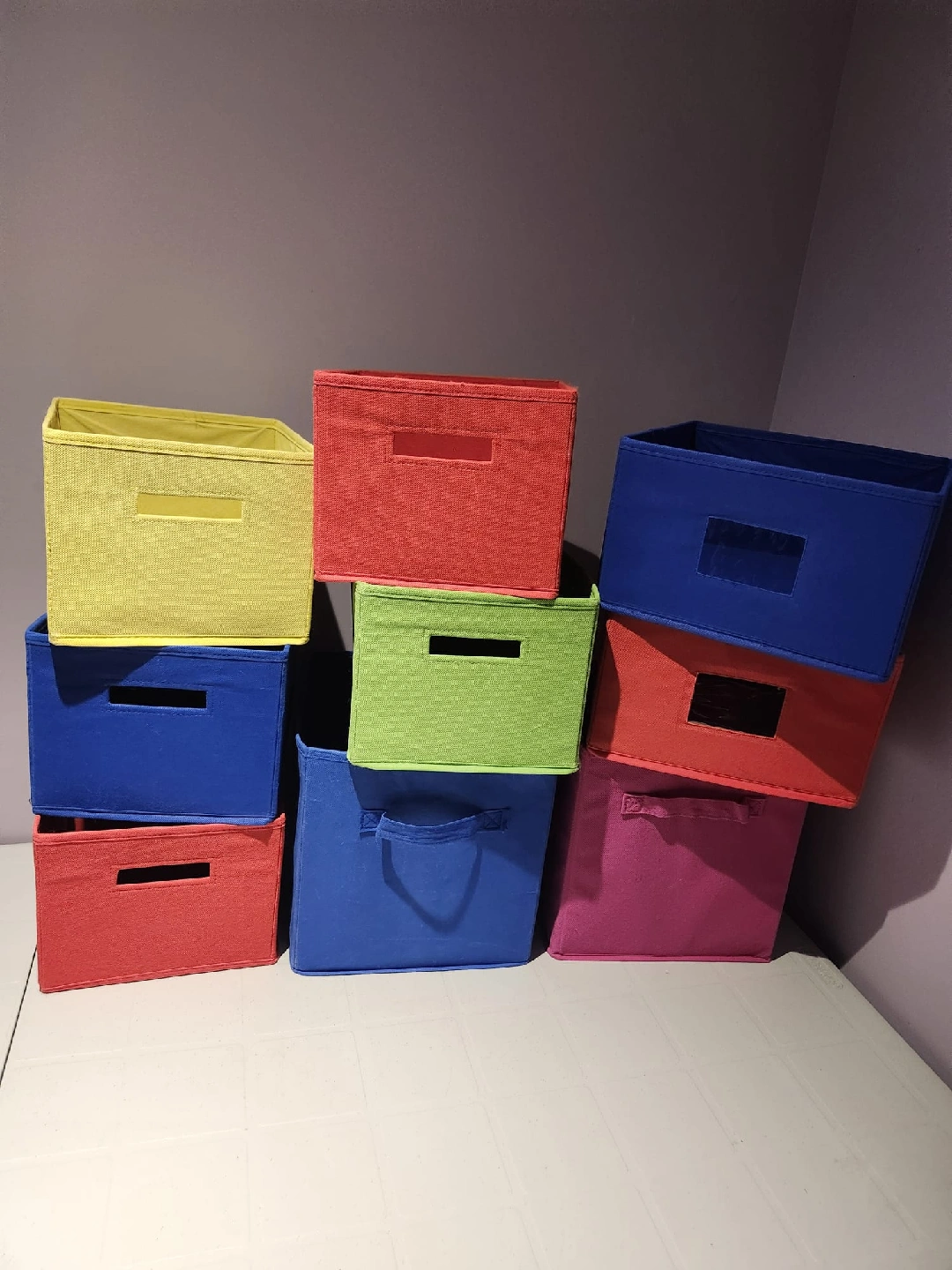 Selling a set of colourful fabric storage bins! 2 large - W 11" & H 11" 2 medium - W 11" & H 6¾" 5 small - W 9" & H 7½" Pick up Woodbine and Rodick Rd in Markham
