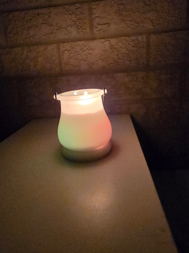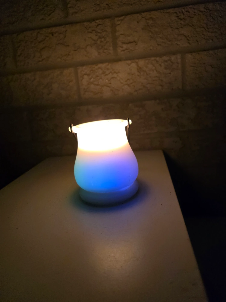 Here's a lovely colour-changing LED candle! It's perfect for adding a bit of ambiance to any room. The candle cycles through a range of colours, creating a calming and relaxing atmosphere pick up only Cash only see my other posts I have a case of 12