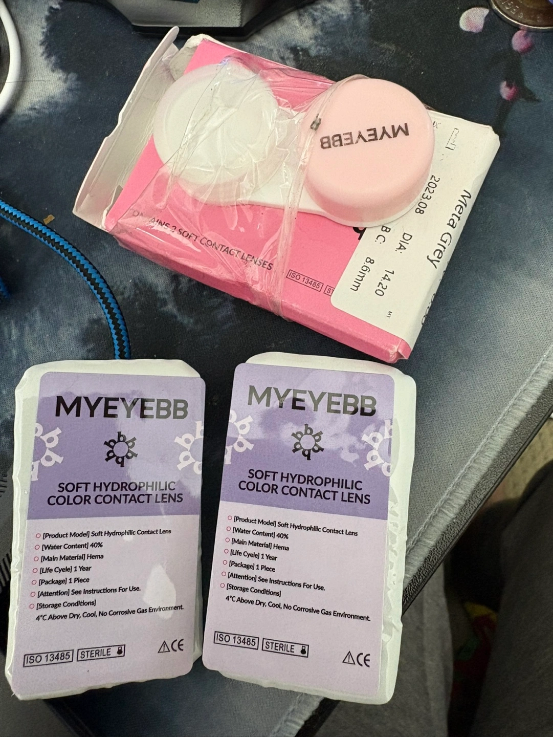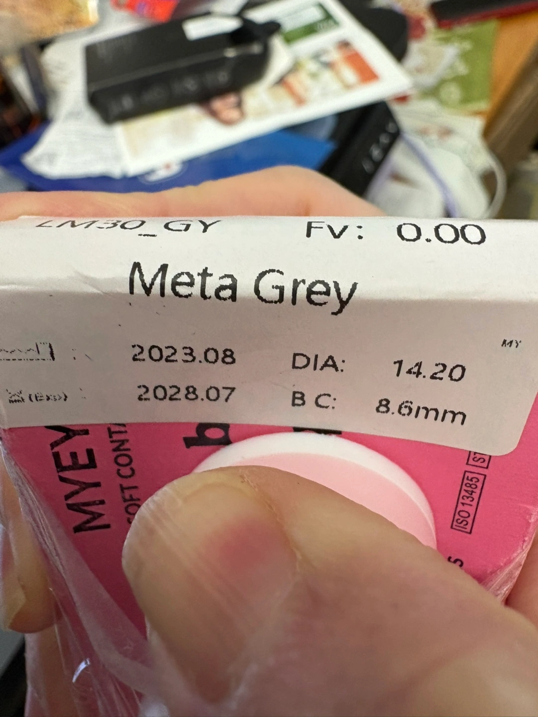 Soft contact lenses. Includes two lenses. Meta Grey colour. No degree. 0.0.