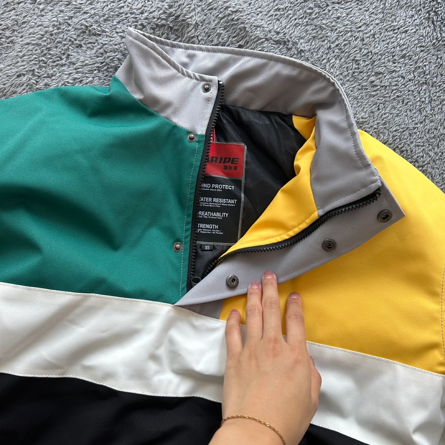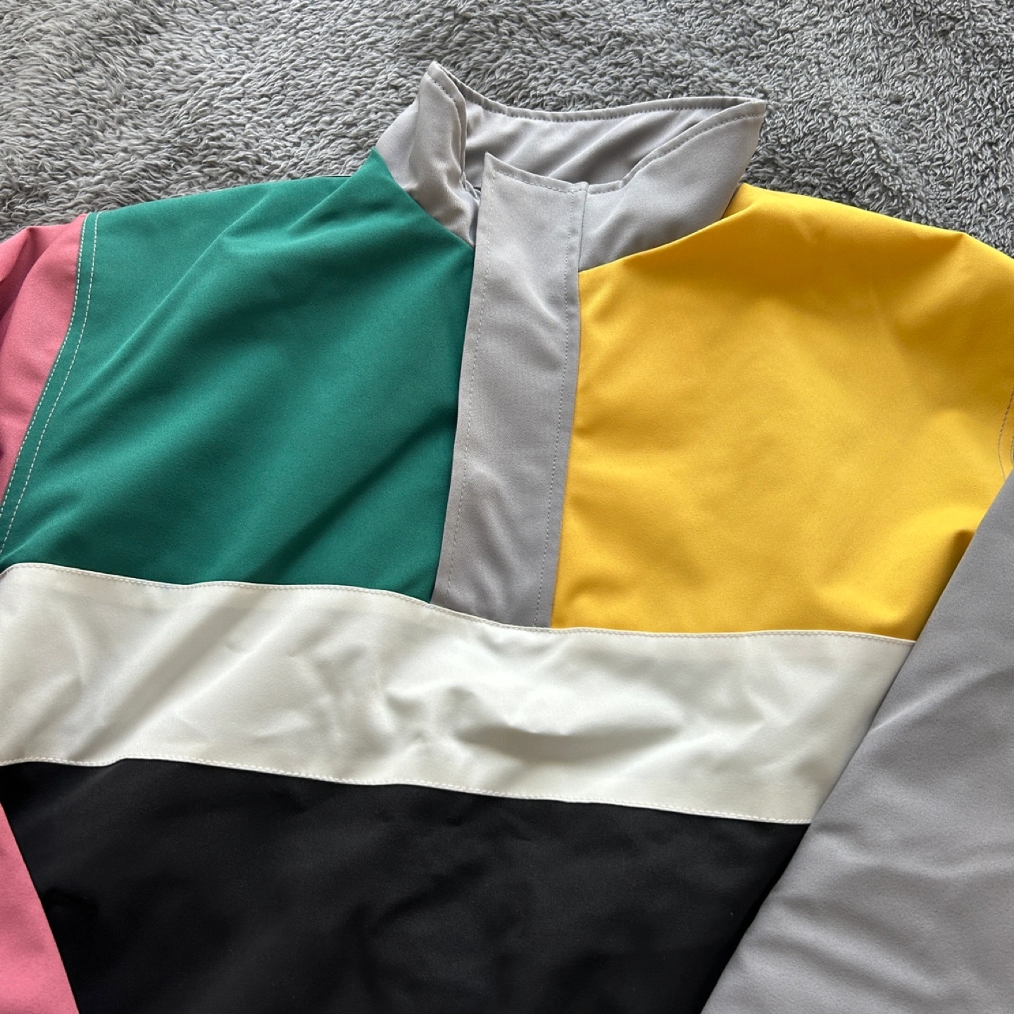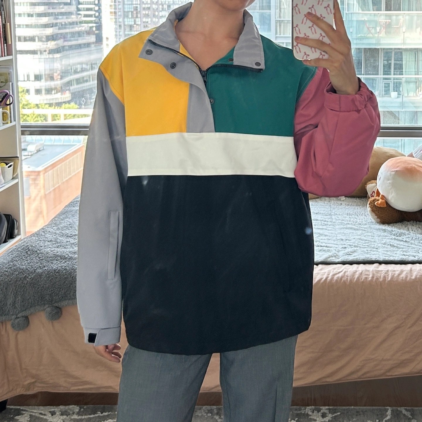 86Colourful quarter zip jacket, thick enough for chillier fall weather Never worn, brand new Labelled XS but fits like M (I’m 5’7 for reference) Measurements available upon request Meetups at Bay and College Bundle discounts available with my other listings