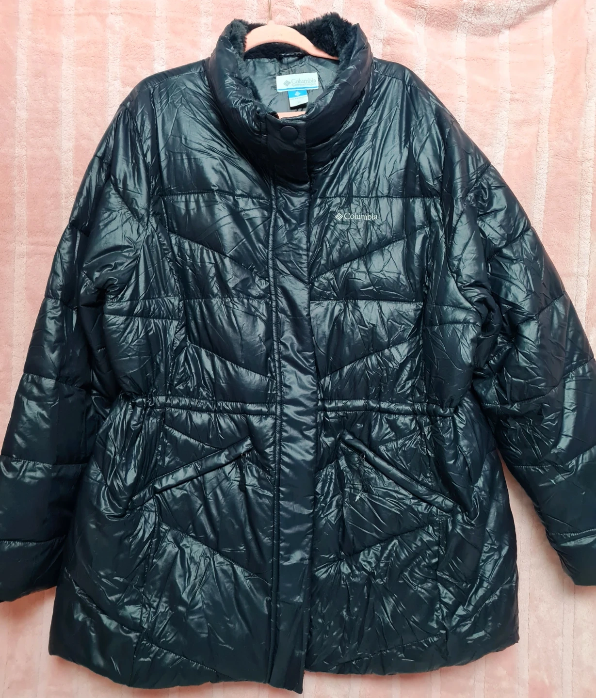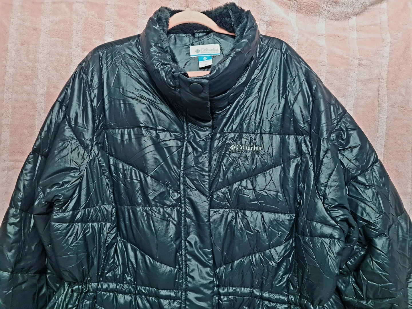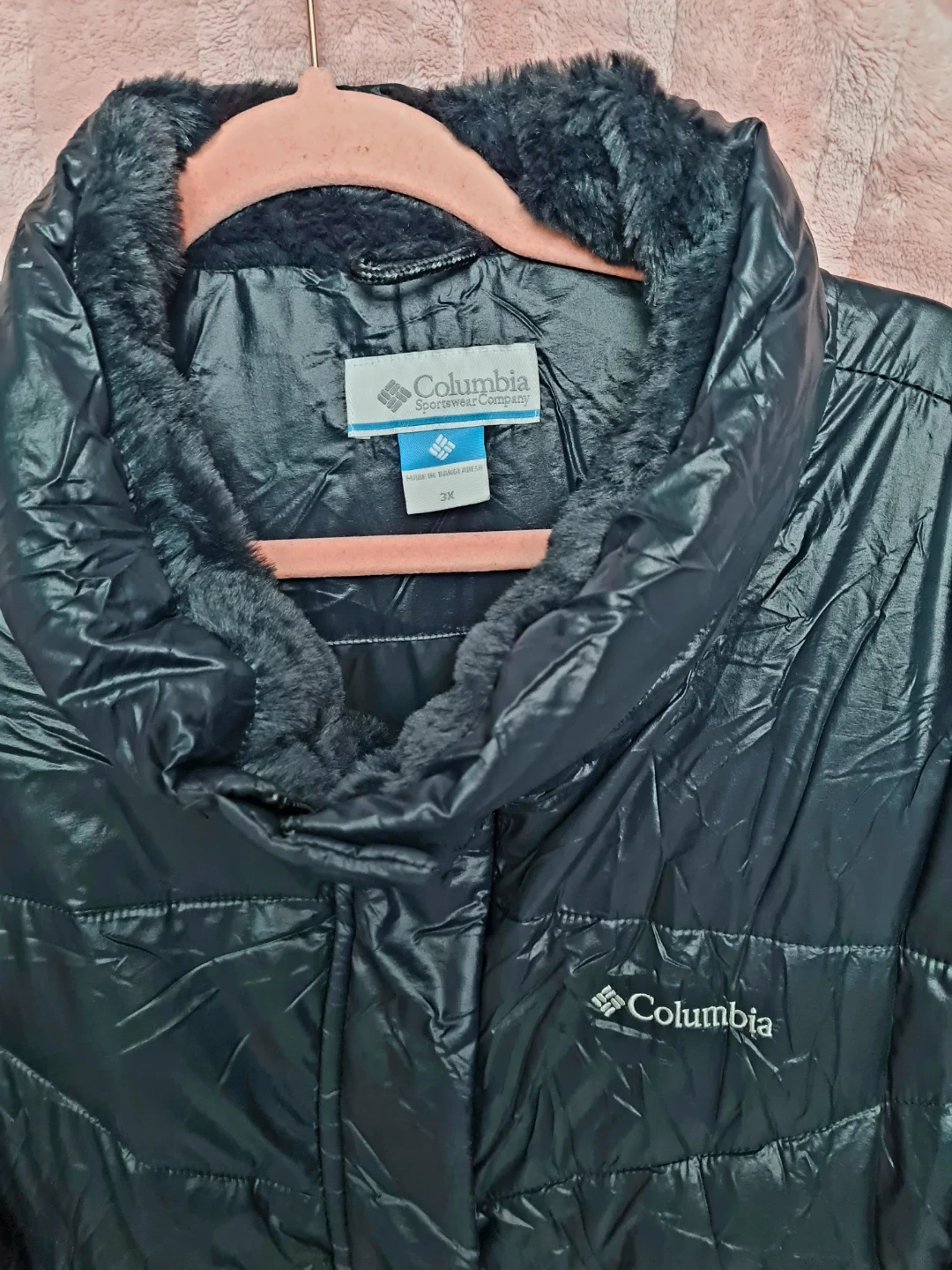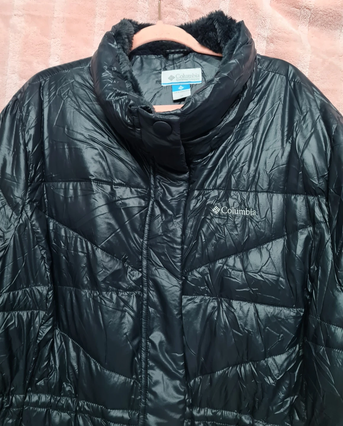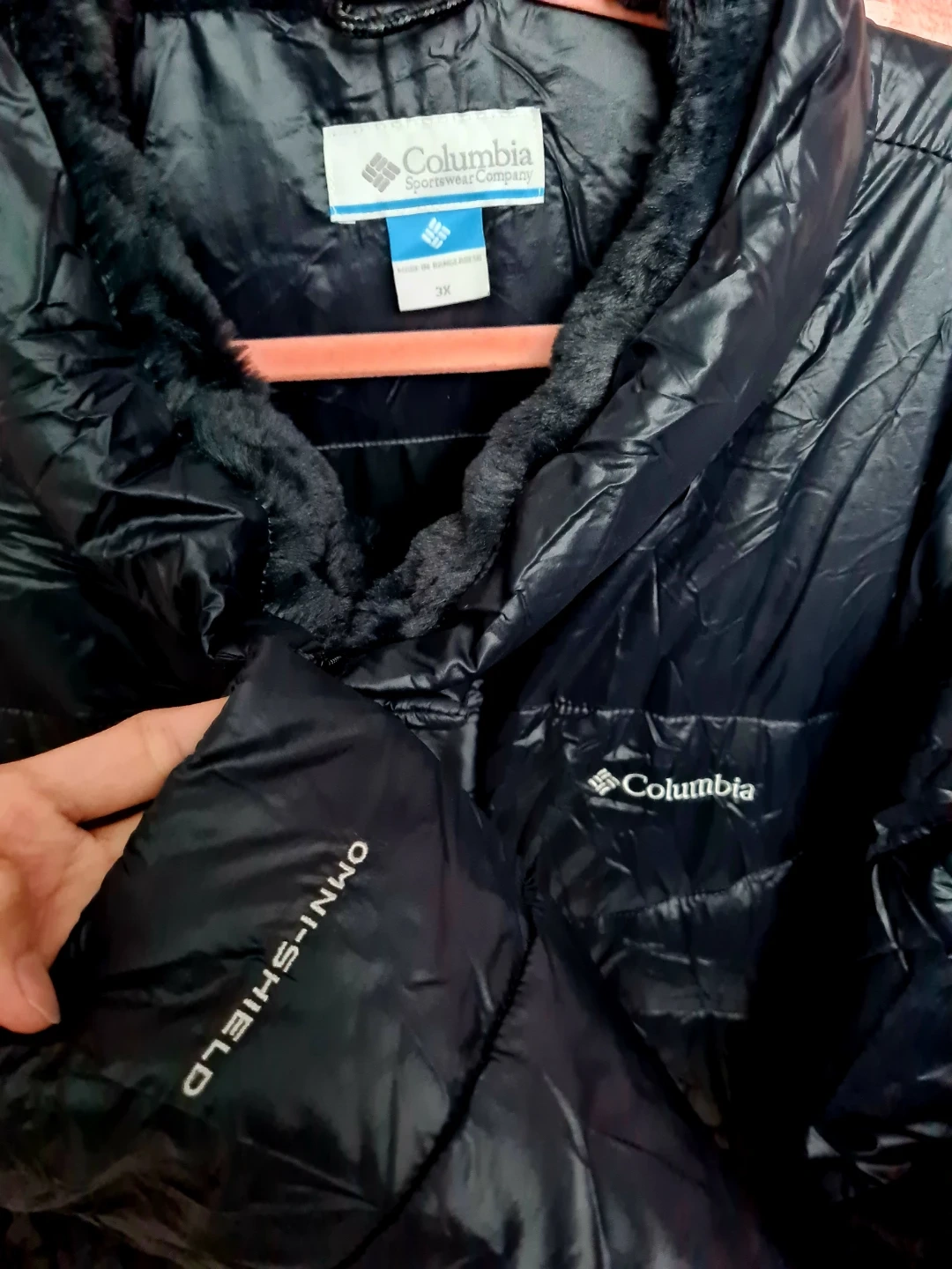 19Selling a Columbia puffer jacket in size 3X! It's a stylish and comfortable piece, perfect for staying warm during cooler weather. The jacket is black and features the Columbia logo on the chest. It has a cozy, fur-lined collar. FOR A LARGER SIZE JACKET, no hoodie. UNISEX