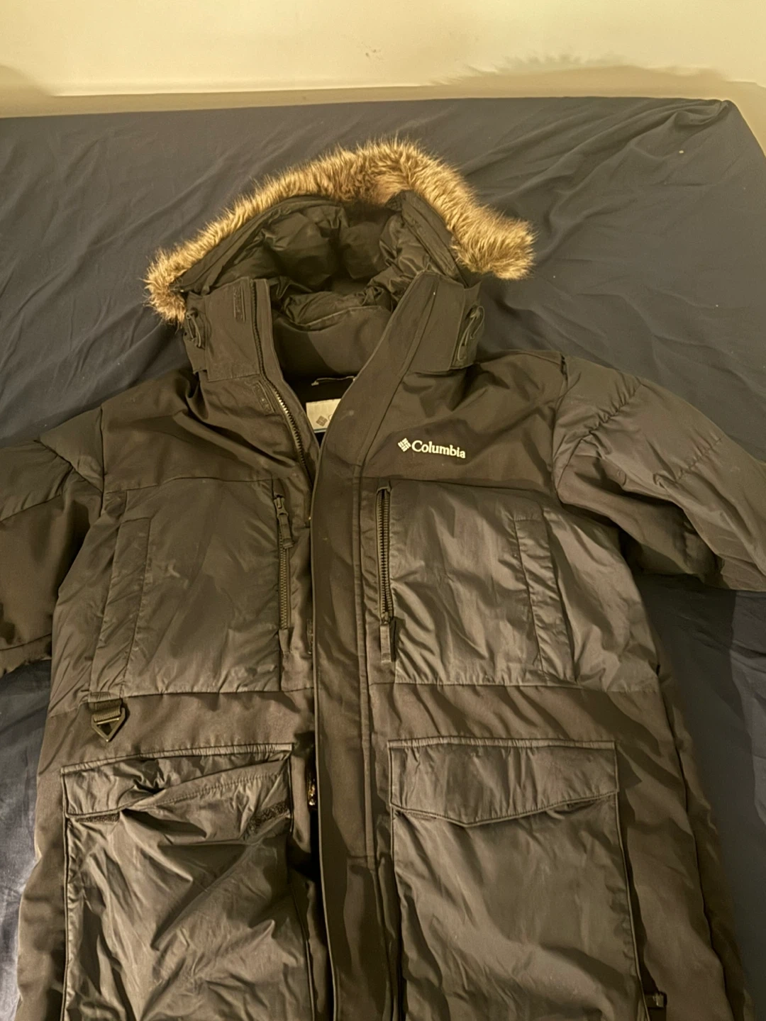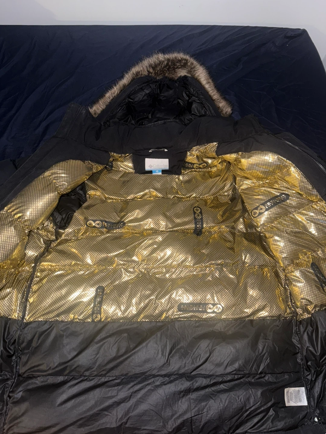0Selling a Columbia winter parka in black, size large. It's in great condition and ready to keep you warm this winter! The inside has a unique gold lining. Perfect for the Canadian winter weather!