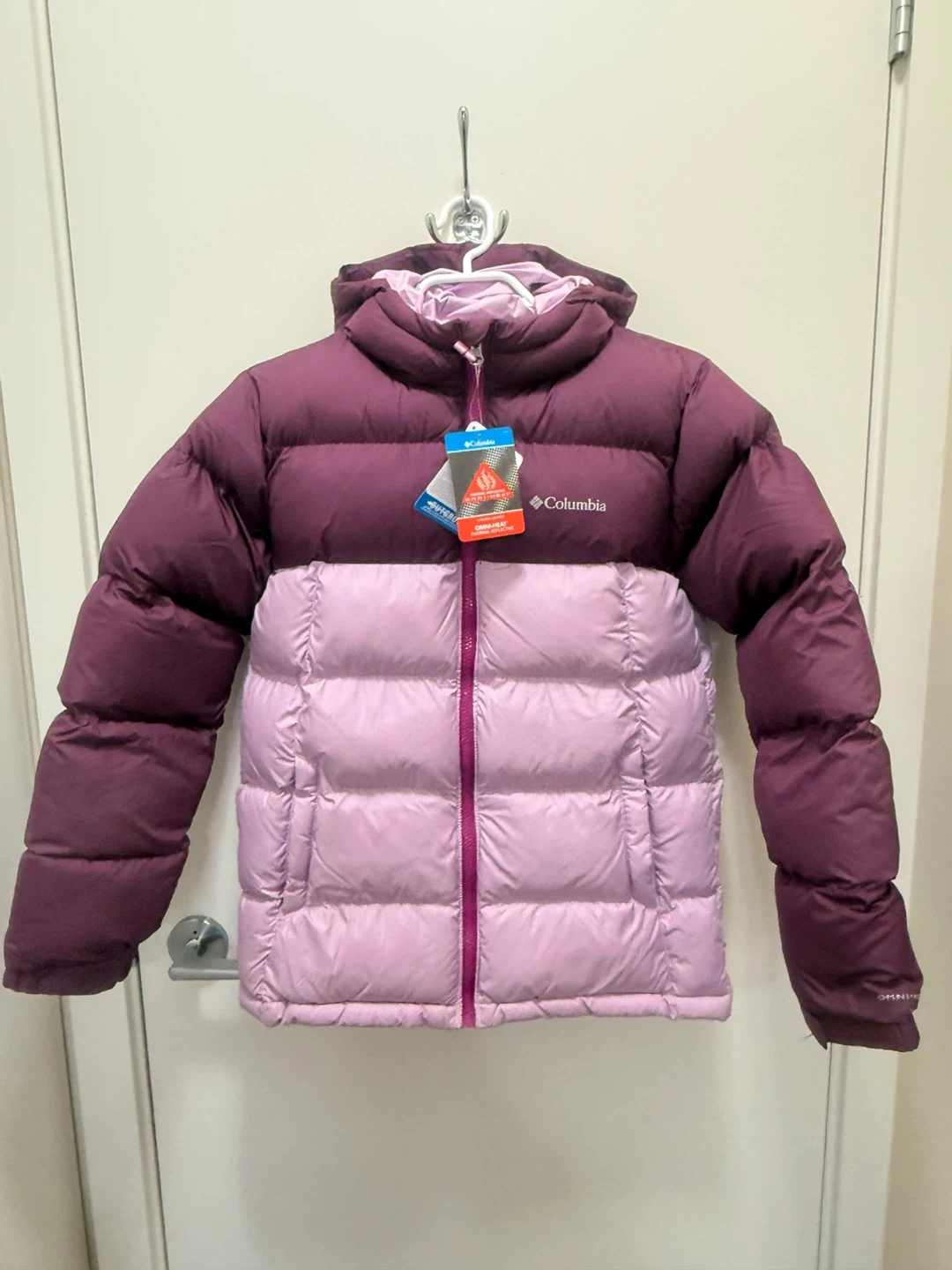 65Selling a Columbia puffer jacket in a lovely purple and pink colour combination. It's in great condition and perfect for staying warm during the colder months!