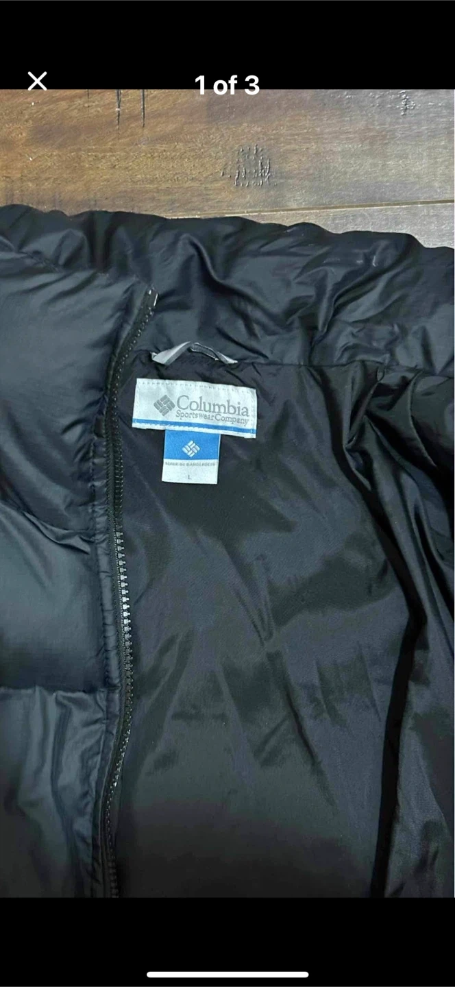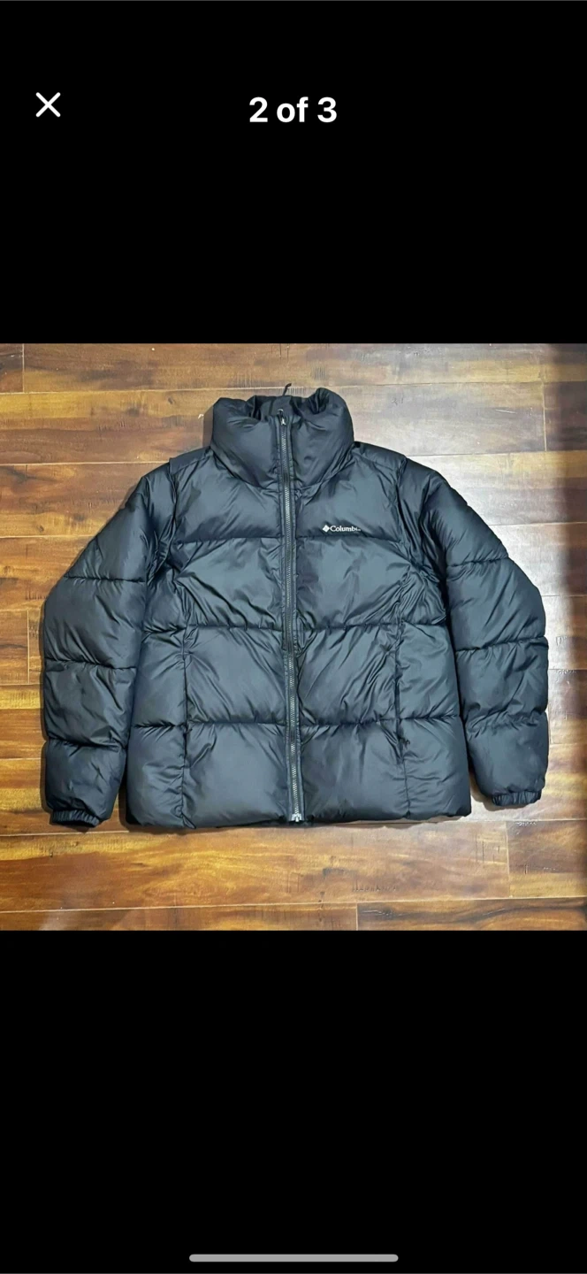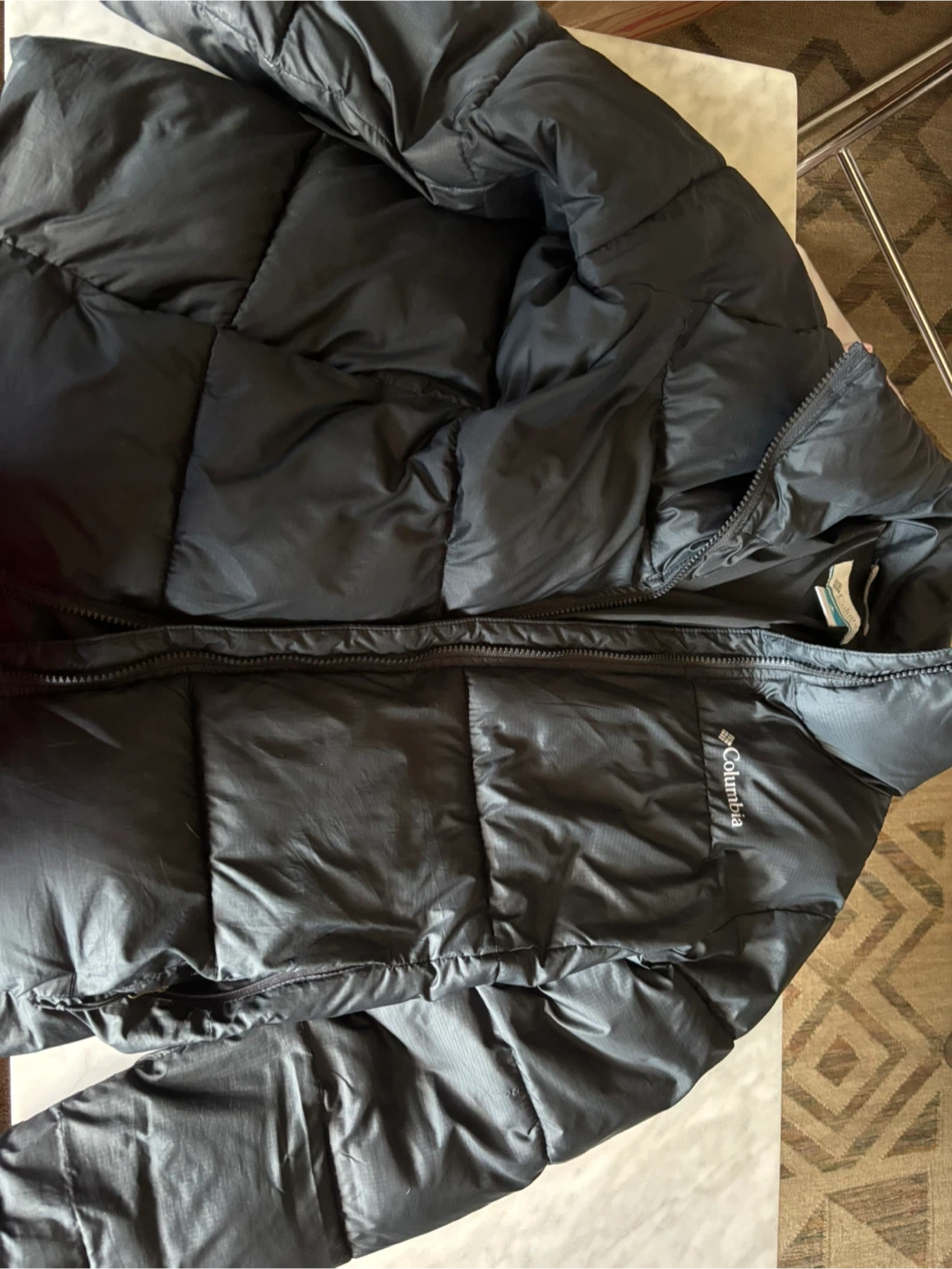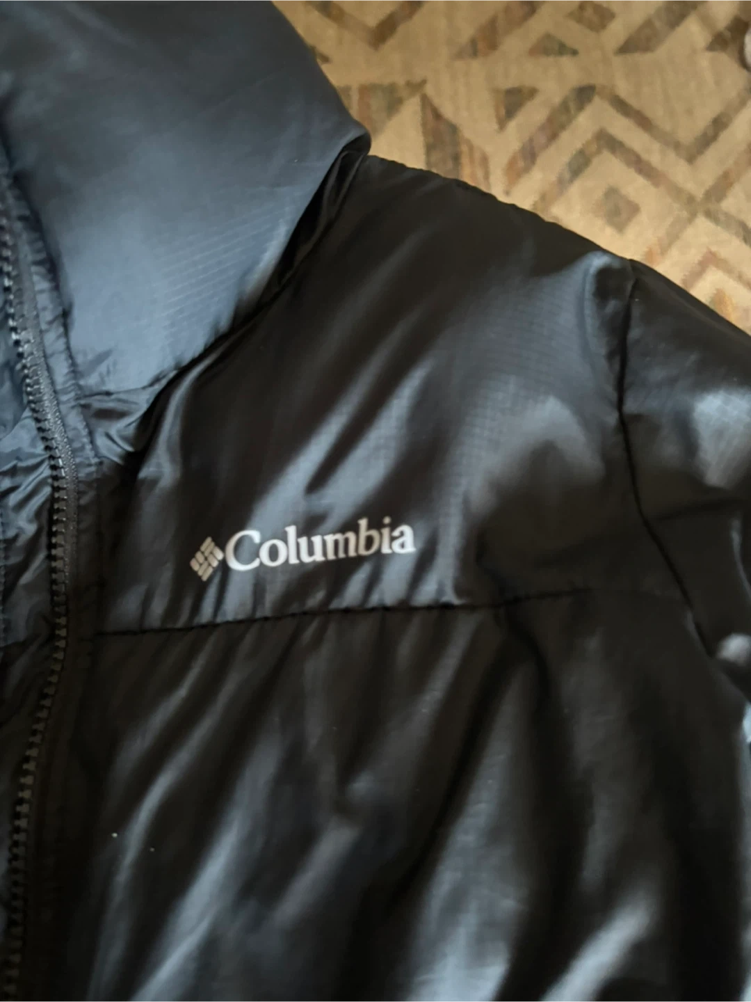 Selling a Columbia puffer jacket in great condition! It's a size medium and perfect for staying warm this winter. The jacket is black and has the Columbia logo on the chest.
