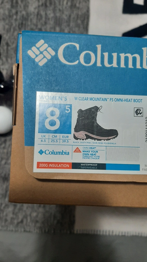 Selling a pair of Columbia W Clear Mountain FS Omni-Heat boots in women's size 8! They are black with a dusty pink accent. These boots feature 200g insulation and are waterproof, perfect for those snowy Canadian winters. They also feature Omni-Heat technology to keep your feet warm and cozy. The original box is included!