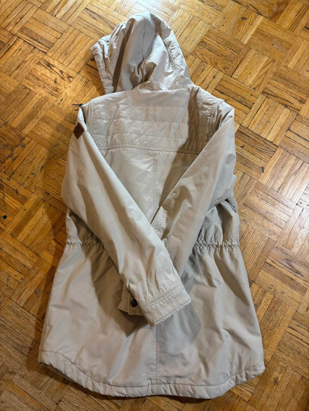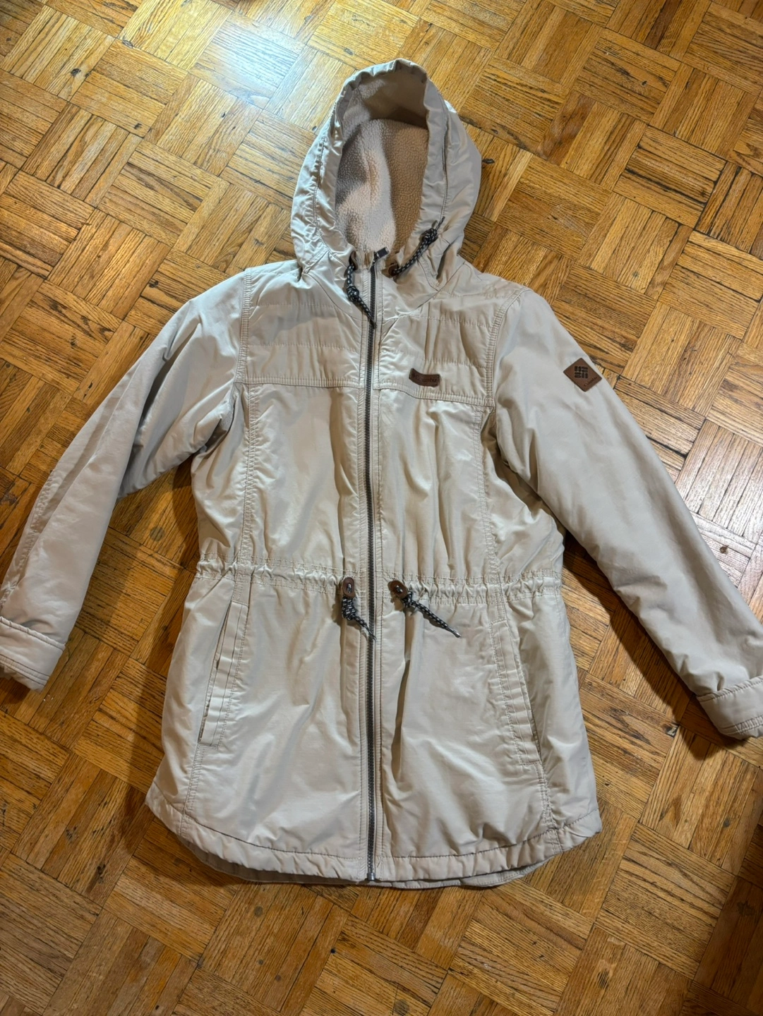 Great for fall weather or early winter weather. Beautiful beige color. Columbia womens jacket, size small. Bought for $120, will sell half price $60