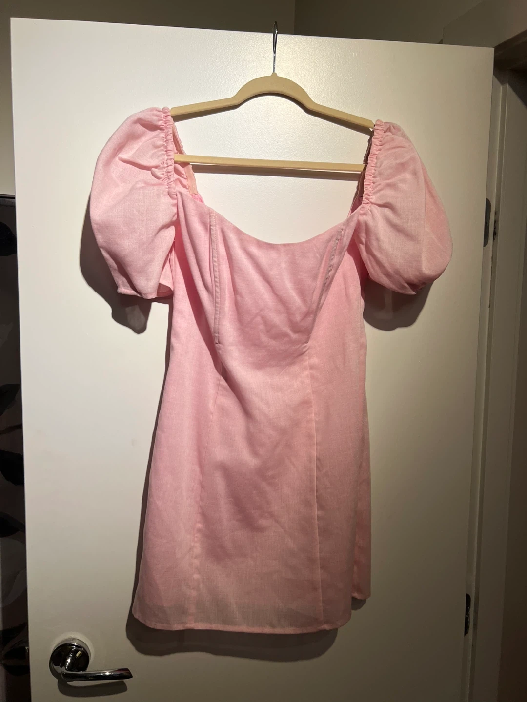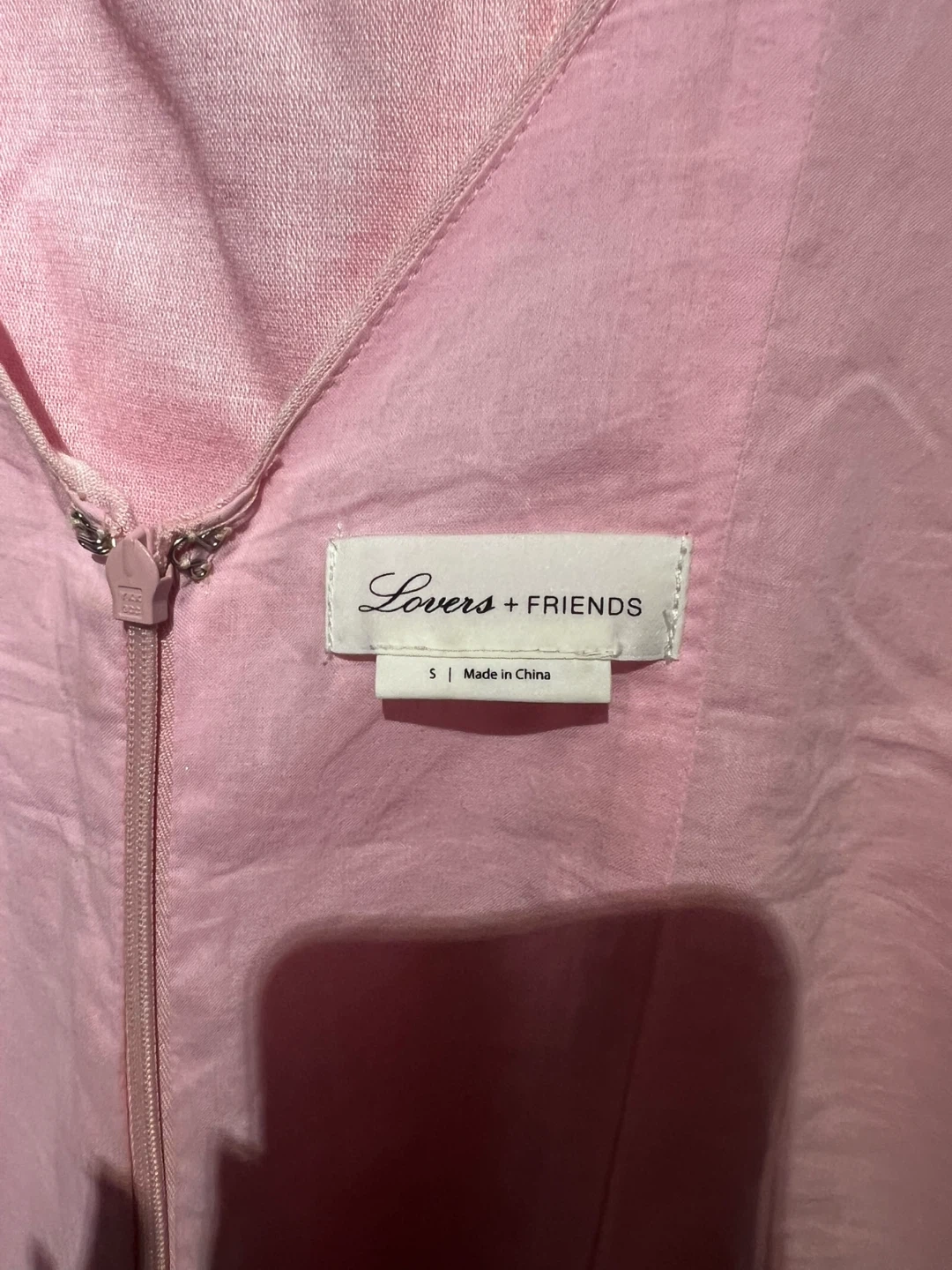 Selling a cute Lovers + Friends mini dress in a lovely shade of pink! It's a size small and features a flattering design. Perfect for a summer outing or a special occasion. The dress is made in China.