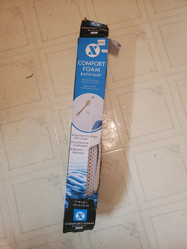 Selling a Comfort Foam Bath Mat. It's 17 inches wide and 36 inches long. The mat is machine washable and is designed for comfort and durability. It provides extended coverage and is cushioned for extra comfort. Cedar pick up.