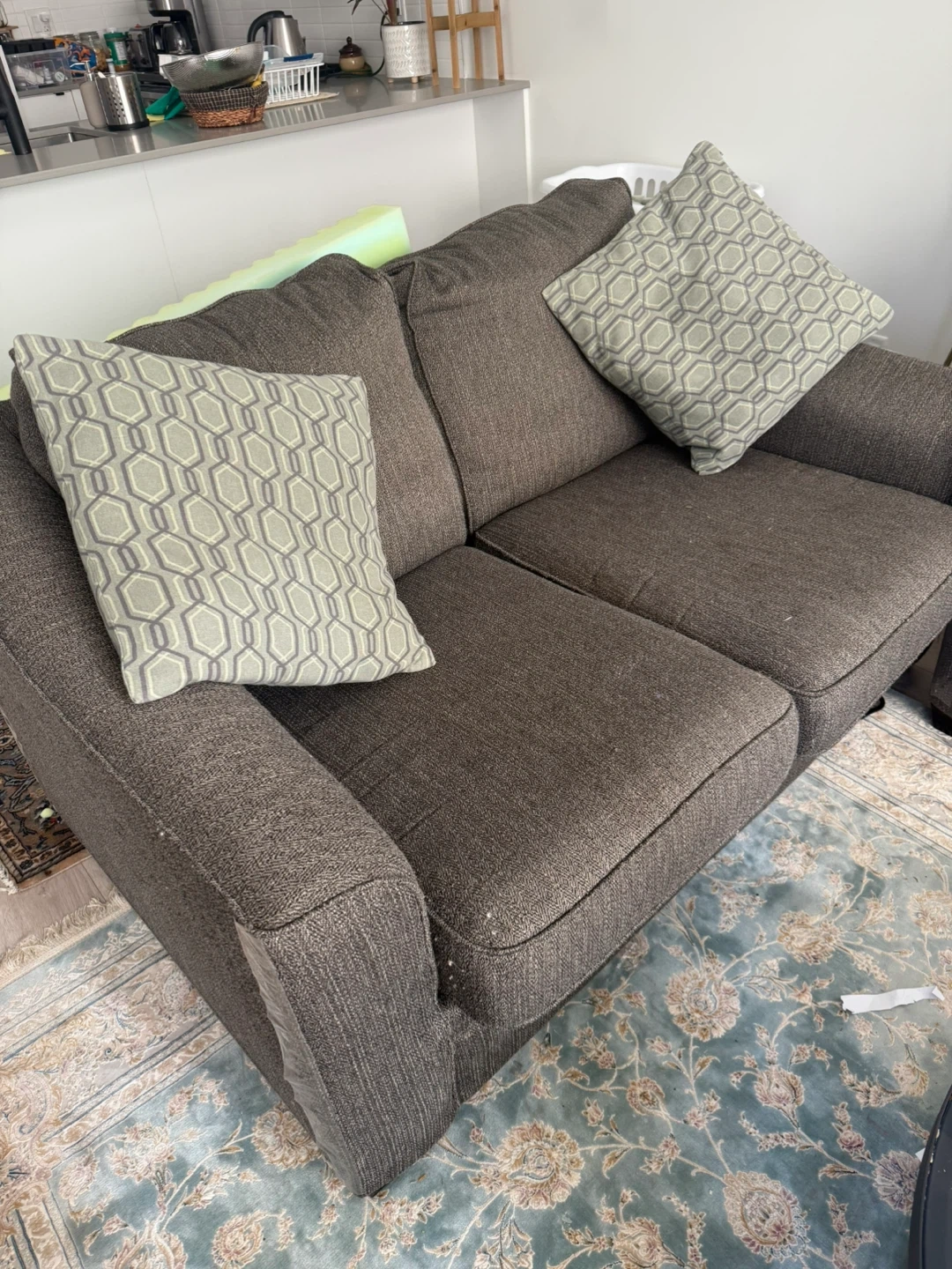 5Selling a comfy three-seater sofa! It's in good condition and perfect for a living room or family room. The sofa comes with a couple of throw pillows to complete the look. It's a great place to relax after a long day and loveseat