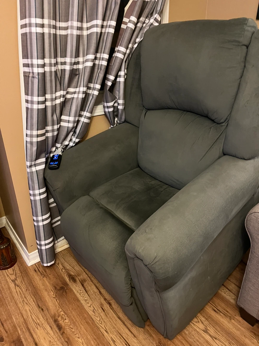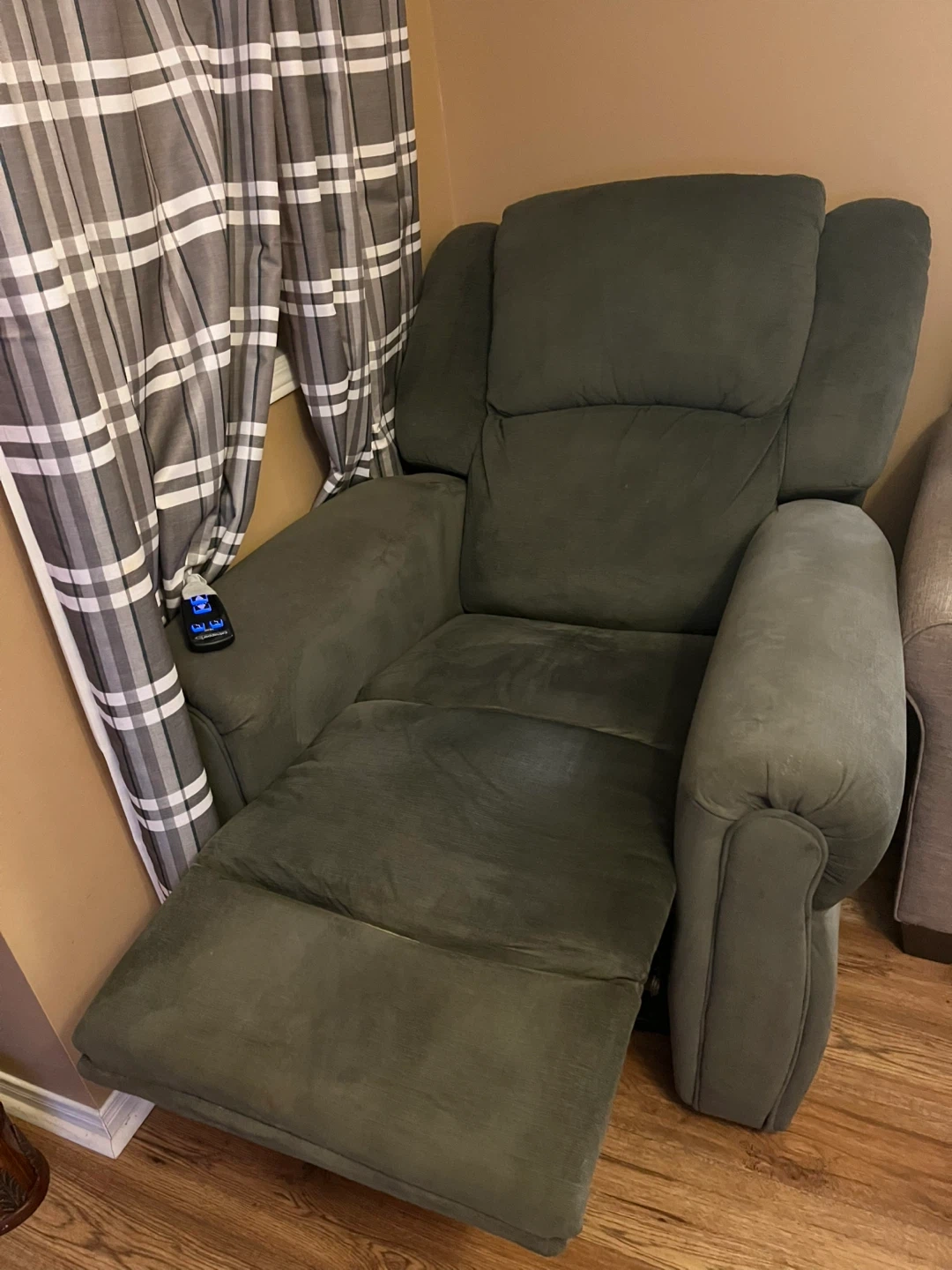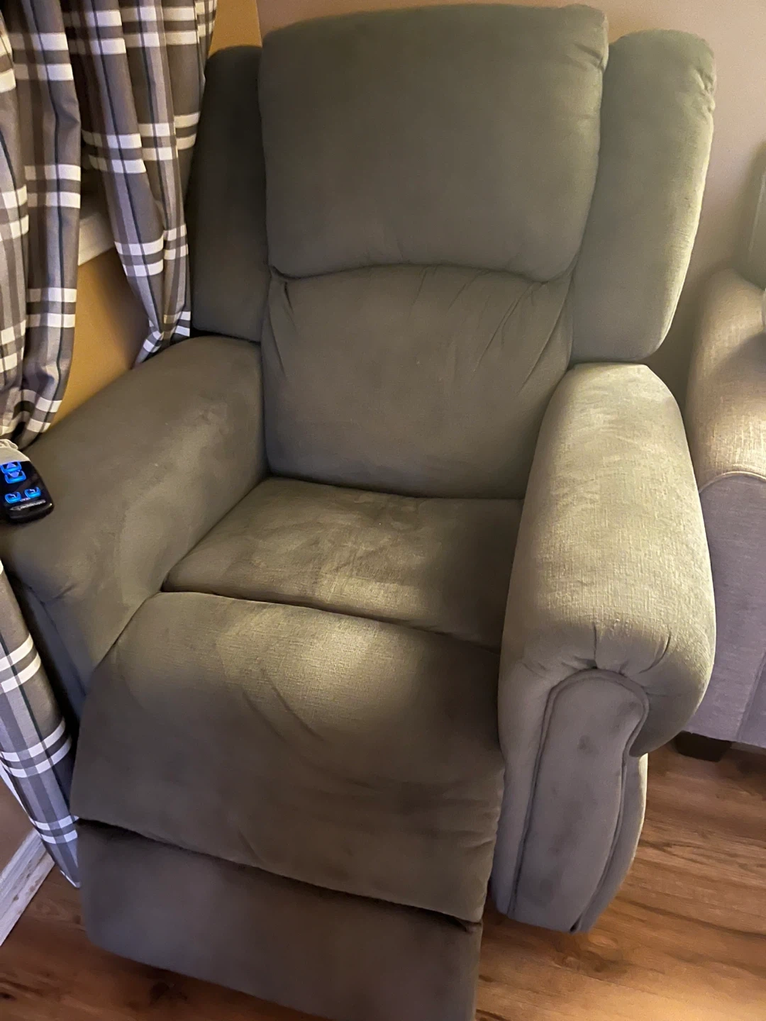 10Selling a comfy recliner chair! It's in great condition and ready for a new home. It's a nice, neutral colour that would fit in with most decor. Perfect for relaxing after a long day! It is remote controlled, motor was serviced lady in 2024. Doesn’t make noise.
