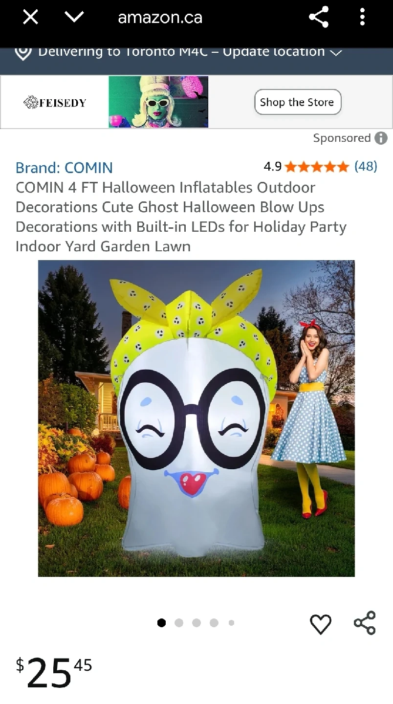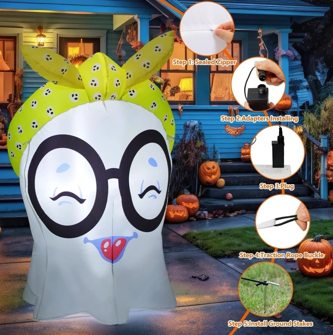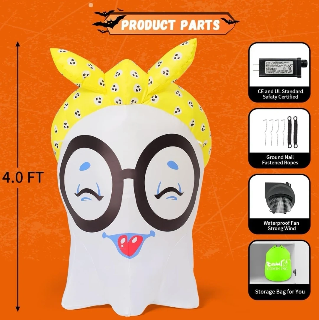 728Get ready to add some spooky-cute charm to your Halloween with this COMIN 4 FT Halloween Inflatable Outdoor Decoration! This adorable ghost, complete with glasses and a bandana, comes with built-in LEDs to light up your yard for a fun, festive touch. It's in new condition, ready to bring smiles to trick-or-treaters and neighbours alike. Features: * 4 FT Tall * Built-in LEDs * Waterproof Fan * Includes Ground Nails and Fastened Ropes * Comes with Storage Bag Don't be a scaredy-cat; grab this inflatable ghost before it disappears! And just so we're clear, if you're seeing this ad, the ghost is still haunting around and available for purchase. Pickup at Bur Oak @ McCowan Markham, or at 70 Queens Wharf Rd, downtown Toronto around noon most of Sundays